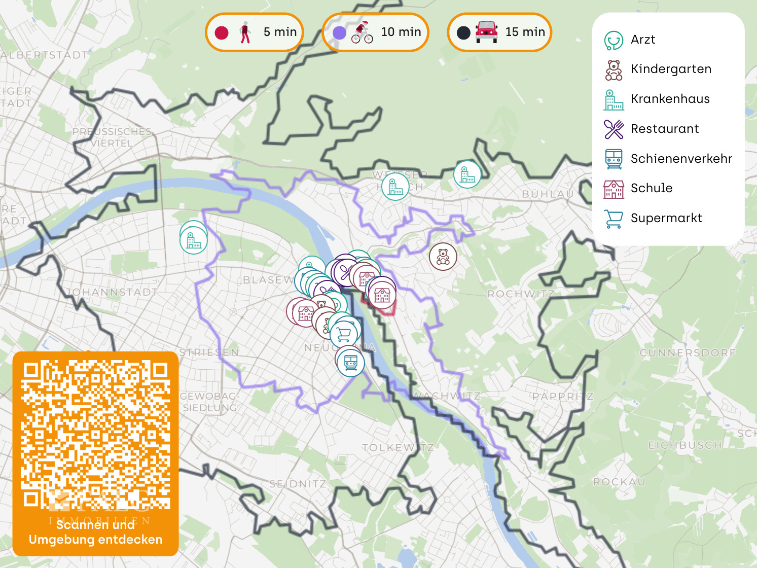 Die Umgebung bietet zahlreiche Freizeitmöglichkeiten. Der Loschwitzer Park und mehrere Spielplätze in der Nähe laden zu entspannten Spaziergängen und Familienausflügen ein. Für Kulturinteressierte ist das Josef-Hegenbarth-Archiv nur etwa 220 Meter entfernt und bietet spannende Einblicke in die Kunstgeschichte.