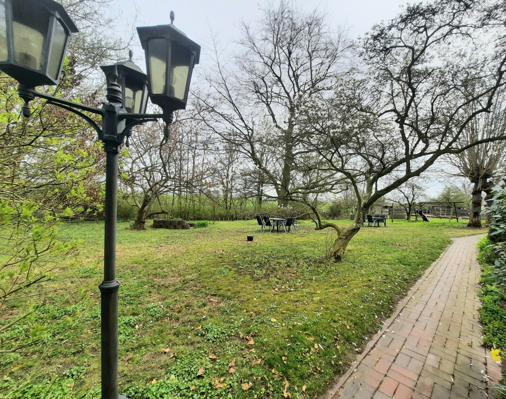 Parkähnliche Gartenanlage mit Spielgeräten für Kinder & Grillplatz/Feuerstelle mit Sitzgelegenheiten