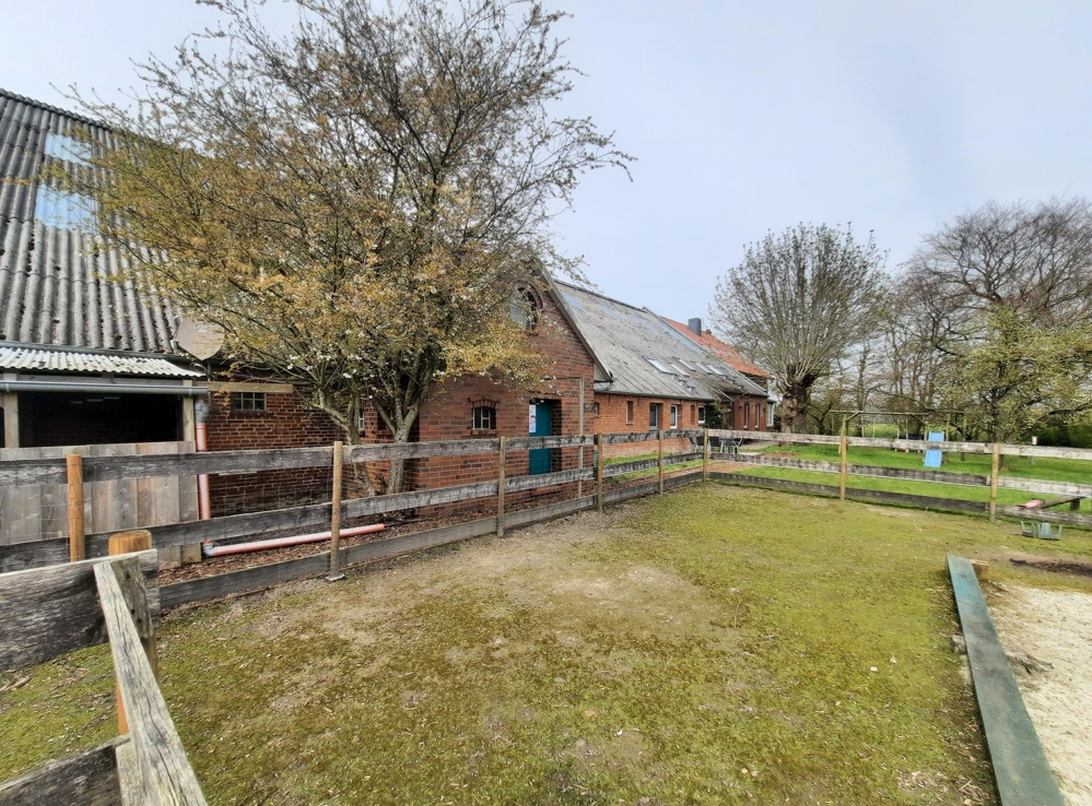 Paddock/Pferch bzw. Outdoor-Gehege (abgezäunt) an Stallgebäude angrenzend z. B. Für Pferde