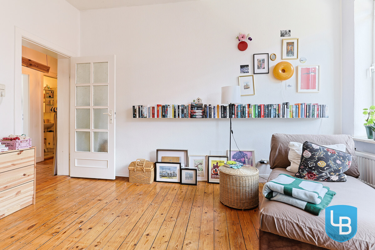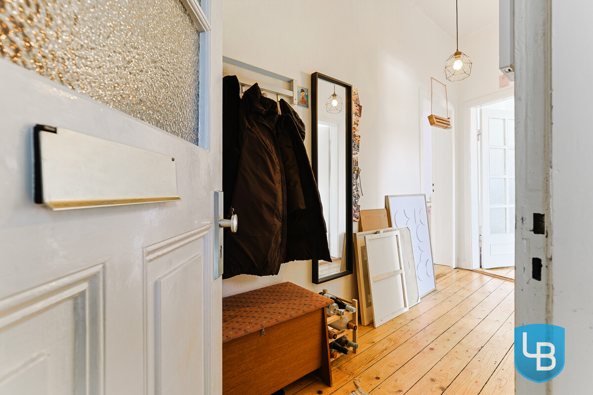 Die Wohnung, die durch die hohen Decken, den Dielenboden und die großen Fenster besonders hell und wohnlich wirkt, empfängt Sie über einen zentralen Wohnungsflur, von dem aus die Räume bequem erreichbar sind. Zur Verfügung stehen ein Wohnzimmer ( ca. 17 m²), ein Schlafzimmer ( ca. 14 m²), eine kleine Küche mit Einbauten ausgestattet sowie ein innenliegendes Wannenbad.