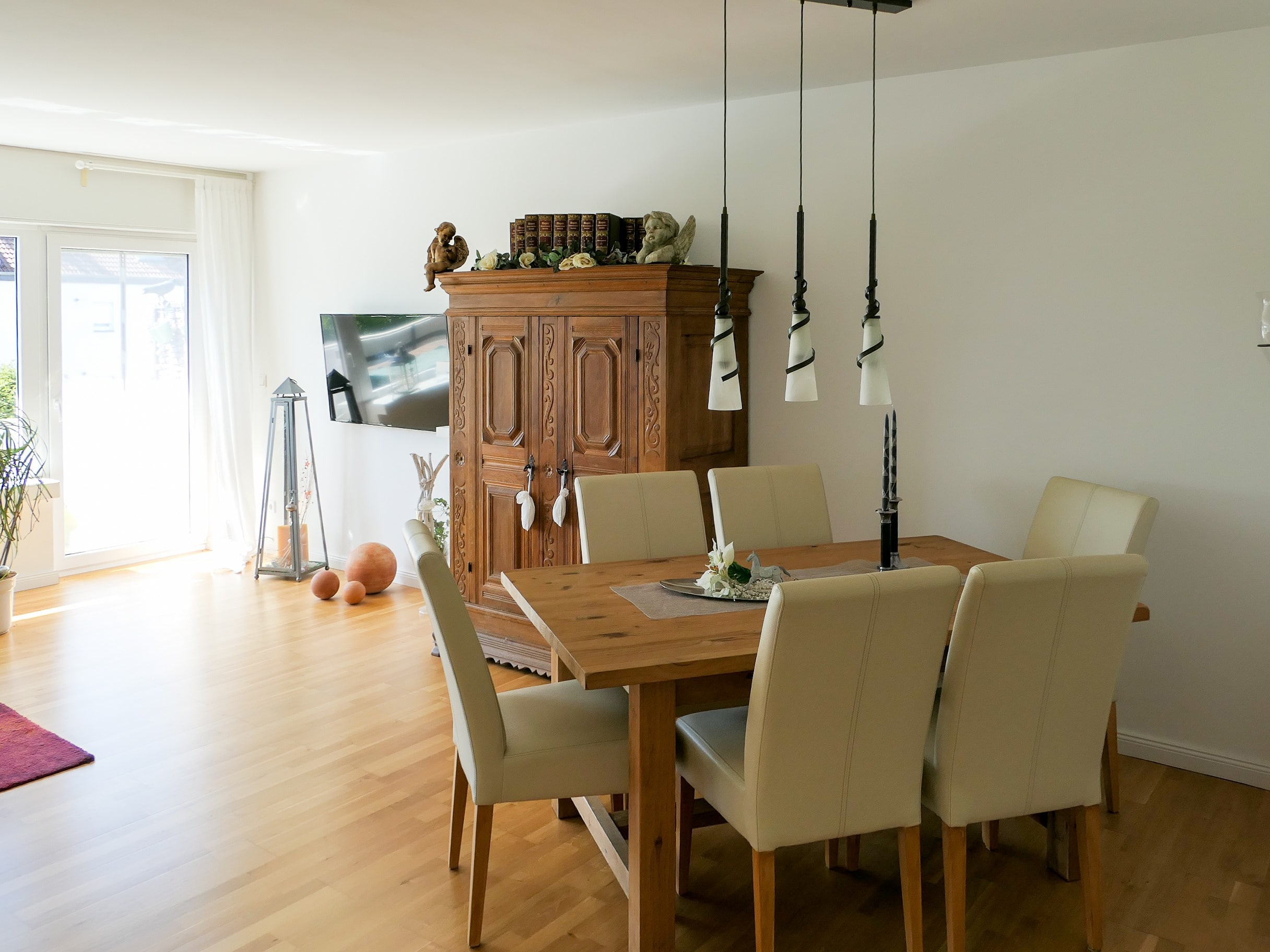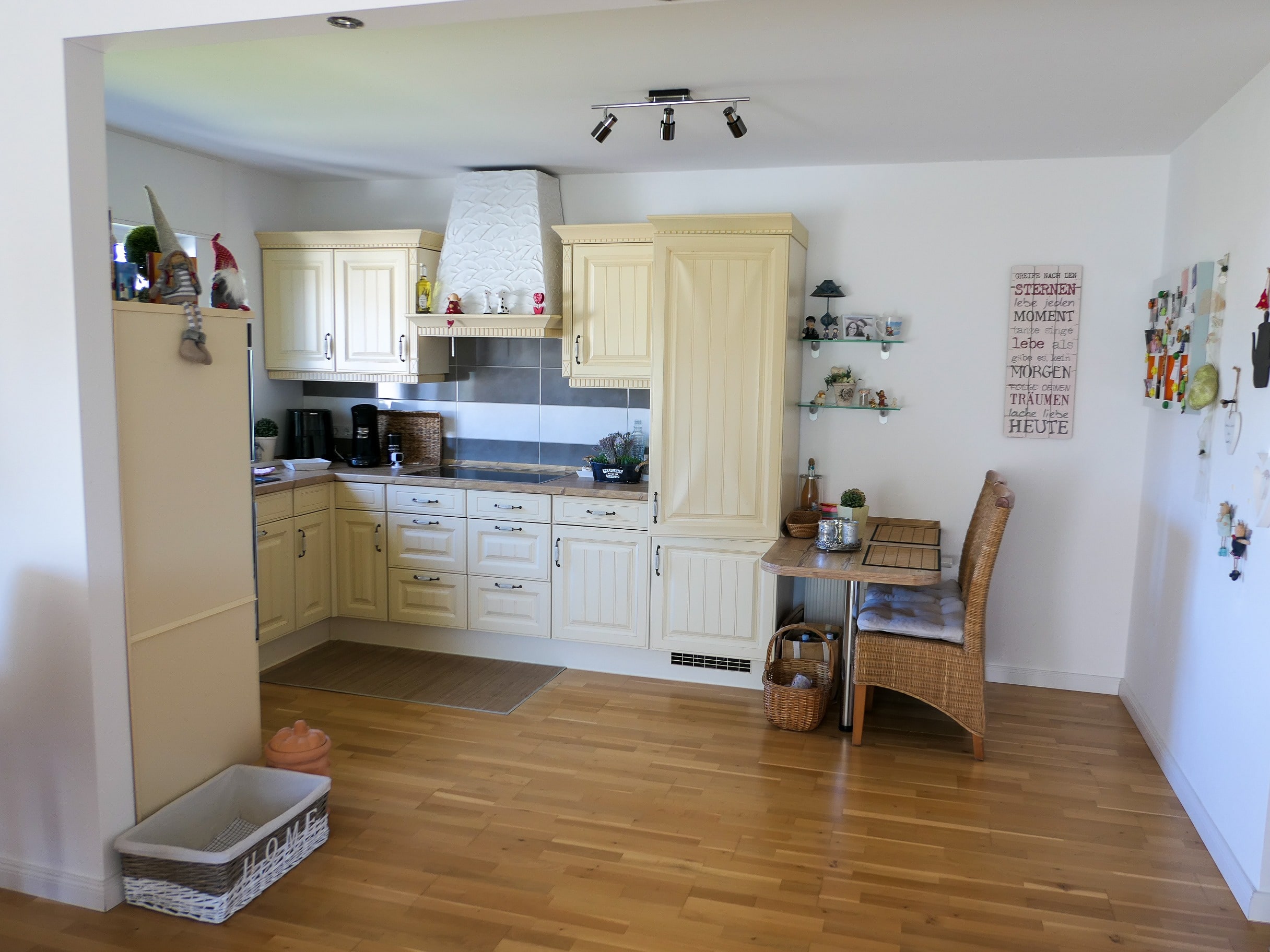 Im Jahr 2014 wurde umfassend modernisiert: neues Tageslichtbad, Gäste-WC, weiße Kassettentüren sowie neue Leitungen in Küche und Bad. Parkett- und Fliesenböden unterstreichen die gepflegte, freundliche Atmosphäre. Die Fenster wurden ebenfalls 2014 erneuert, die Ölheizung stammt aus 1998 und verfügt über einen neuen Brenner.