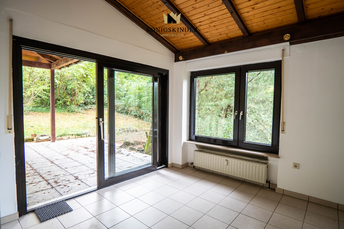 * Wohnung EG ca. 111,3 m² Wfl: + Leerstehend + Böden: Laminat / Fliesen 2007 + Fußbodenheizung im Wohnzimmer + Balkonsanierung 2007 + Wintergartenanbau aus 1981 + offener Kamin + Balkon, Terrasse, Garten