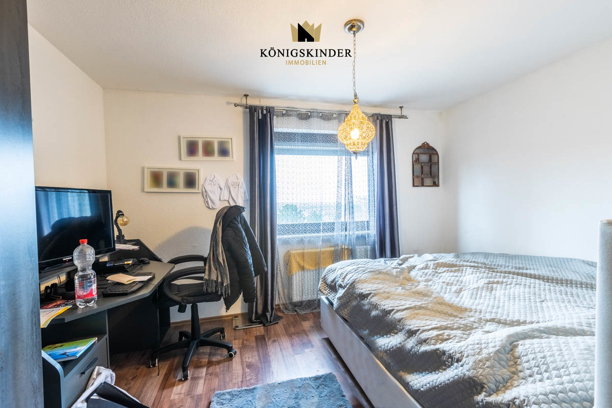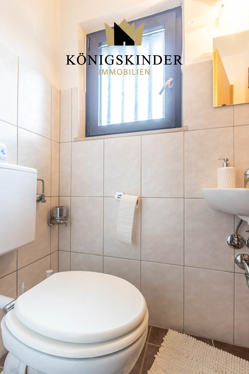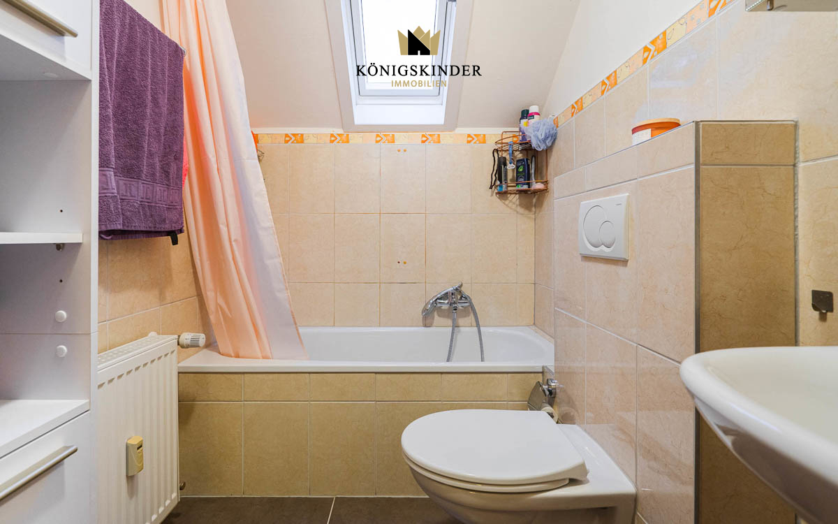 1.OG Im 1. OG befindet sich eine gut vermietete 4-Zimmer-Wohnung. Auch hier entzückt der große Wohnbereich und ein Balkon mit Aussicht. Diese Wohnung wurde 2010 umfassend renoviert. Das Tageslichtbad mit einer Dusche, einer Badewanne, Waschbecken und ein separates WC befindet sich anliegend an den Schlafräumen.