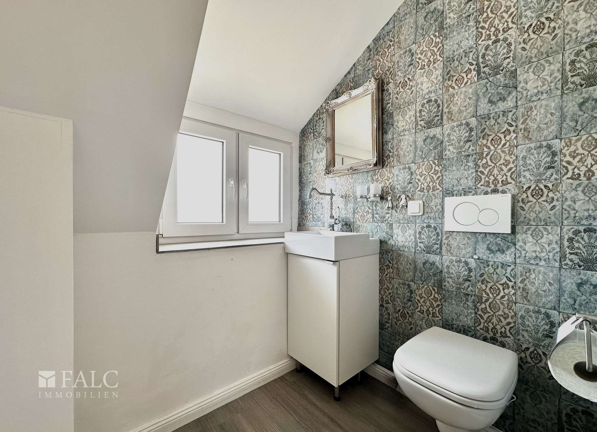 Im Obergeschoss stehen zwei helle Zimmer zur flexiblen Nutzung als Schlaf-, Arbeits- oder Gästezimmer zur Verfügung. Ein weiteres modernes WC ist ebenfalls vorhanden.