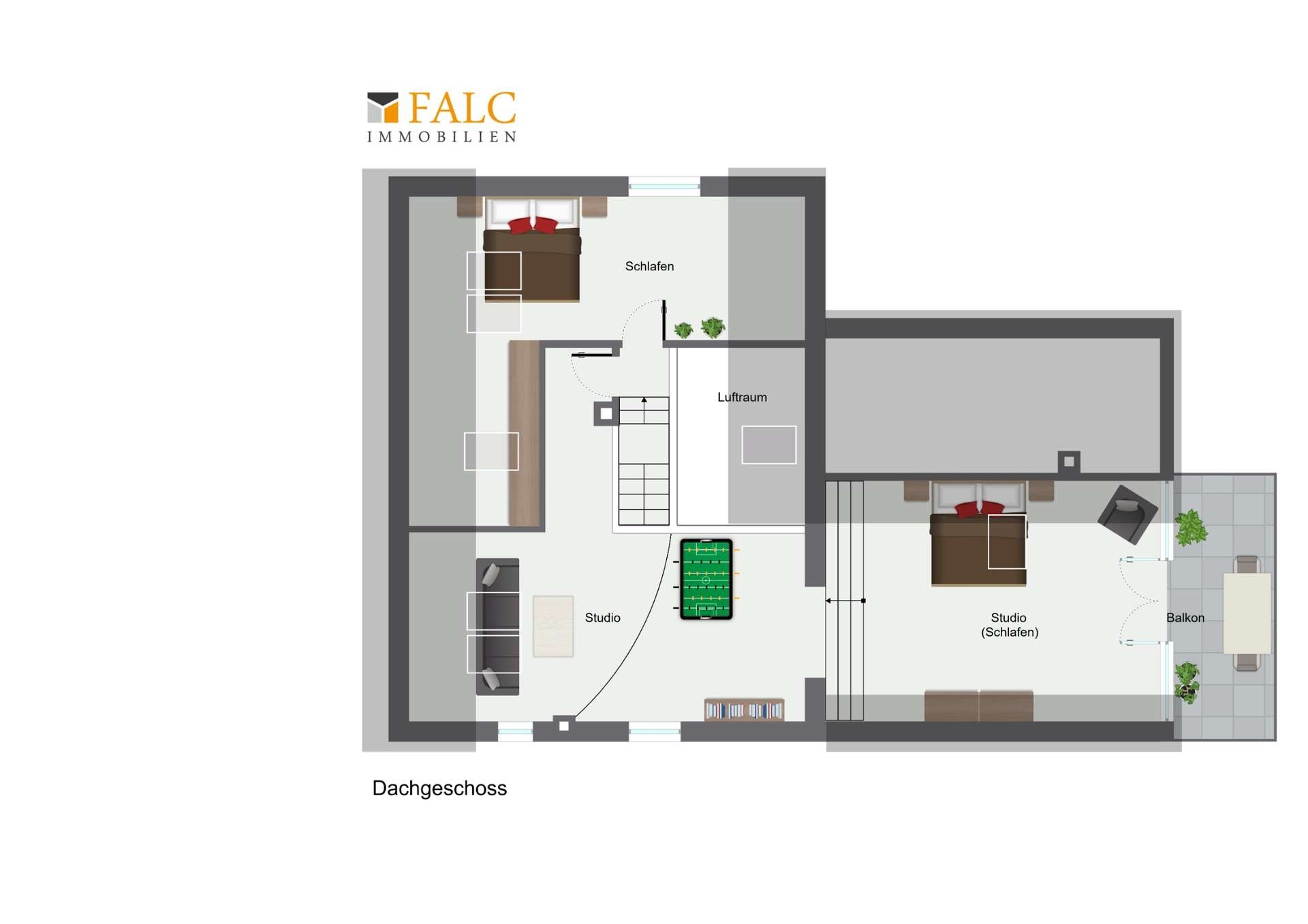 Obergeschoss - Großes Studio mit Balkon und weiteres Schlafzimmer