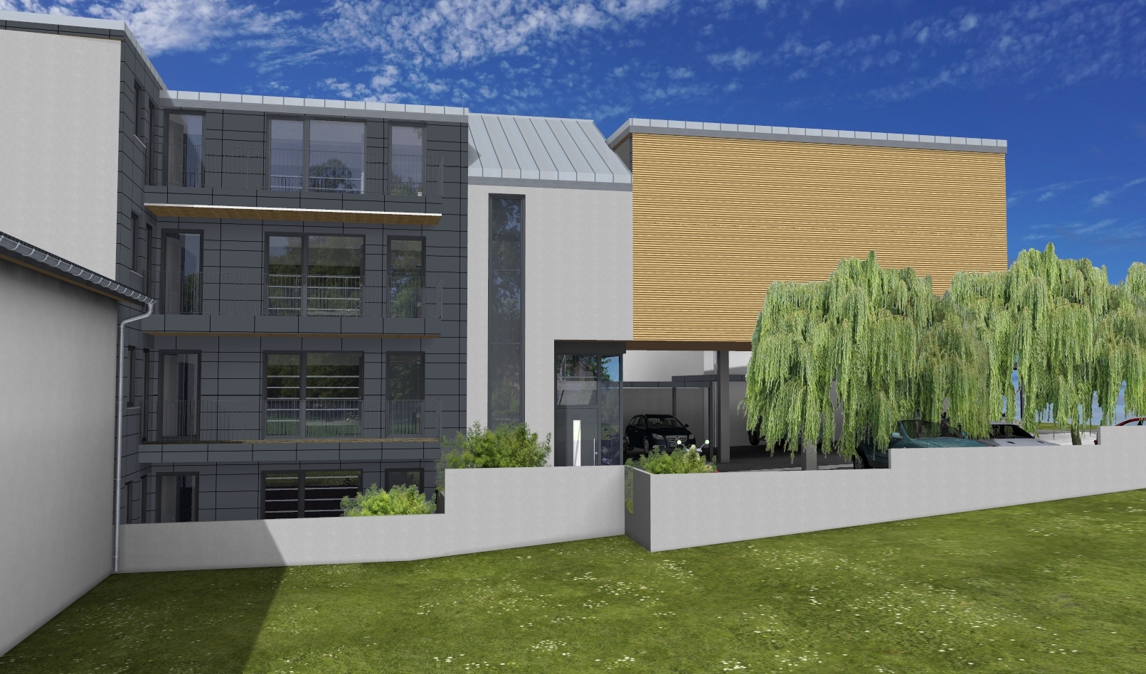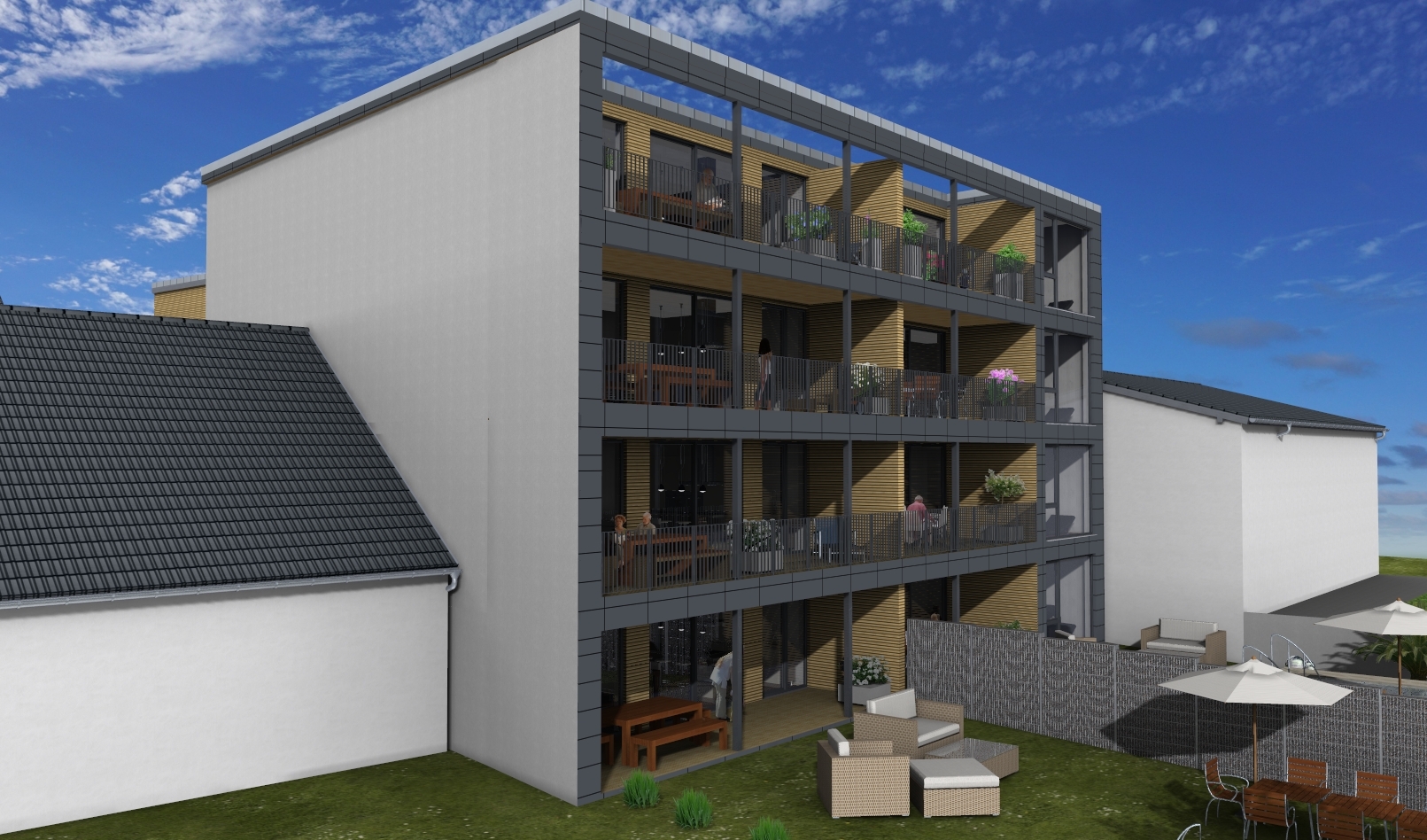 - Die Außenwände werden mit einer hochwertigen vorgehängten, hinterlüftenden und nahezu sanierungsfreien Fassade ausgeführt
