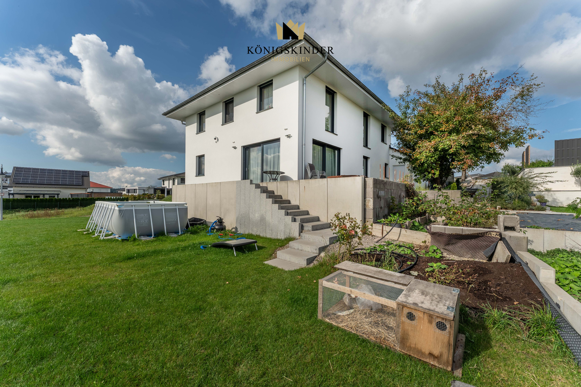 Stylisch und Modern......auch von dieser Seite......sogar mit Garage......und toller Aussicht......auch von hier......hier gehts rein......großzügiger Eingangsbereich......in die Küche......alles vorhanden......weiter ins Wohn- und Esszimmer......gemütlich mit Kaminofen......Gästezimmer ist auch vorhanden......mit Duschbad gegenüber......oben gehts weiter......sogar Homeoffice......und Kinderzimmer......und noch eins......für Mama und Papa ist auch noch Platz......sogar mit Ankleide......und Bad für alle......mit Dusche......eine Runde Tischtennis im Keller......neben dem Vorratsraum......und danach in die Sauna......mit anschließender Abkühlung......es gibt noch mehr Räume im Keller.Bild