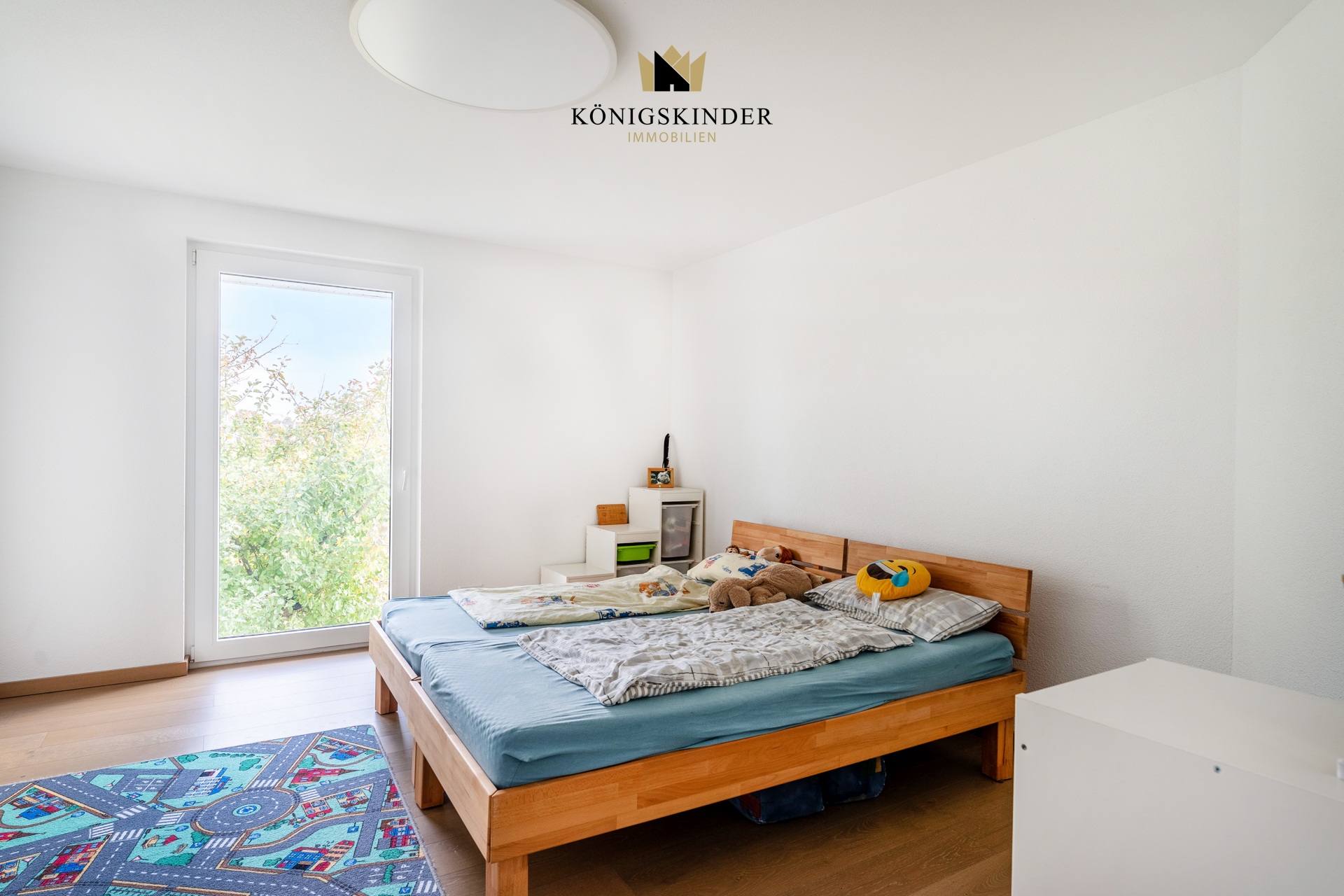 Eine Treppe hoch im Obergeschoss, finden Sie mehrere Zimmer für Ihr Familien- bzw. Alltagsleben. Ein Elternschlafzimmer mit Ankleide - Drei Kinderzimmer - Ein Büro fürs Homeoffice und ein Badezimmer bieten Ihnen großzügig Platz, für Sie und Ihre Familie.