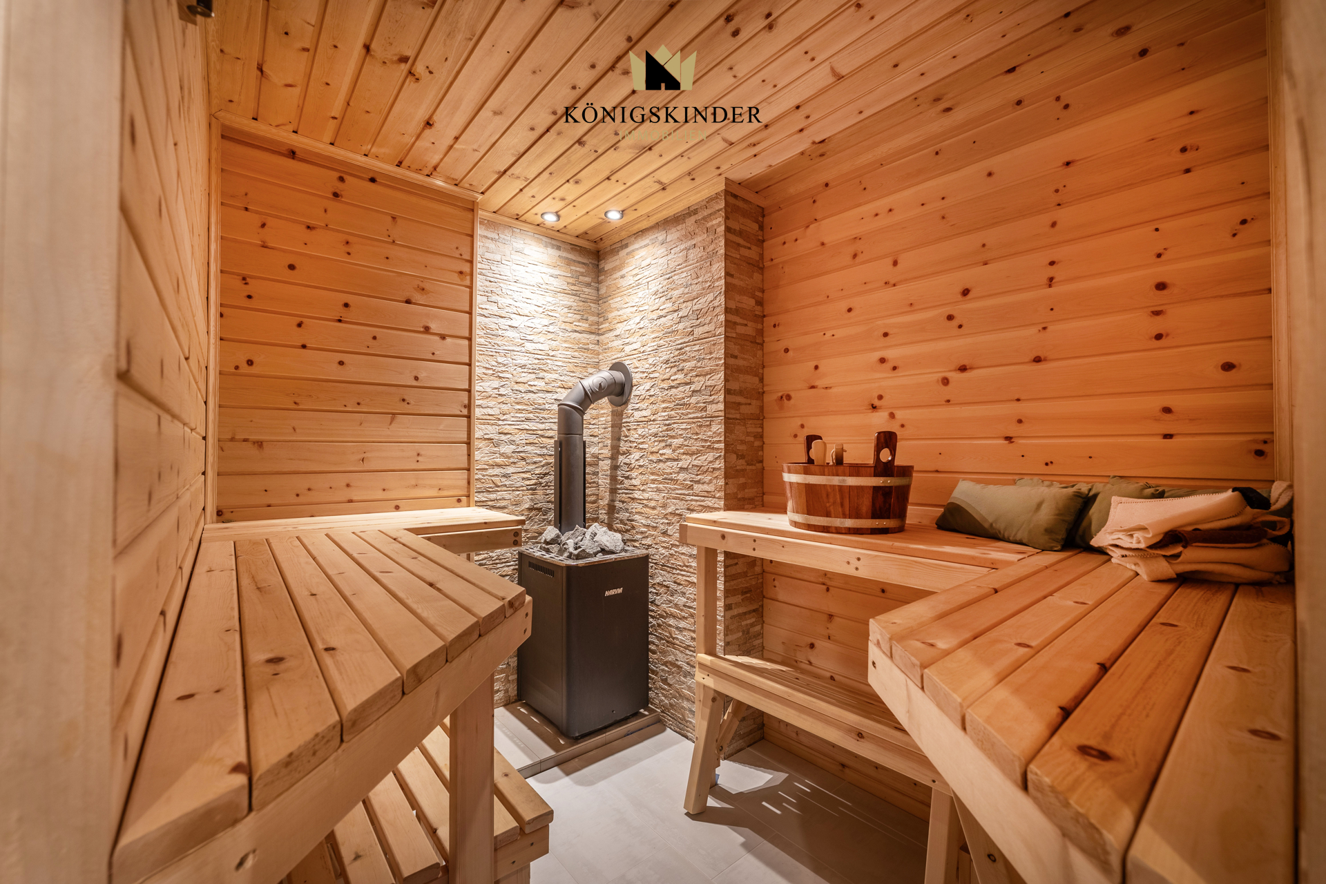 Damit noch nicht genug, ein Wellness-Bereich ist im Untergeschoss auch schon da - ein Raum mit Sauna, Dusche und Toilette runden das reichlich vorhandene Platzangebot ab.