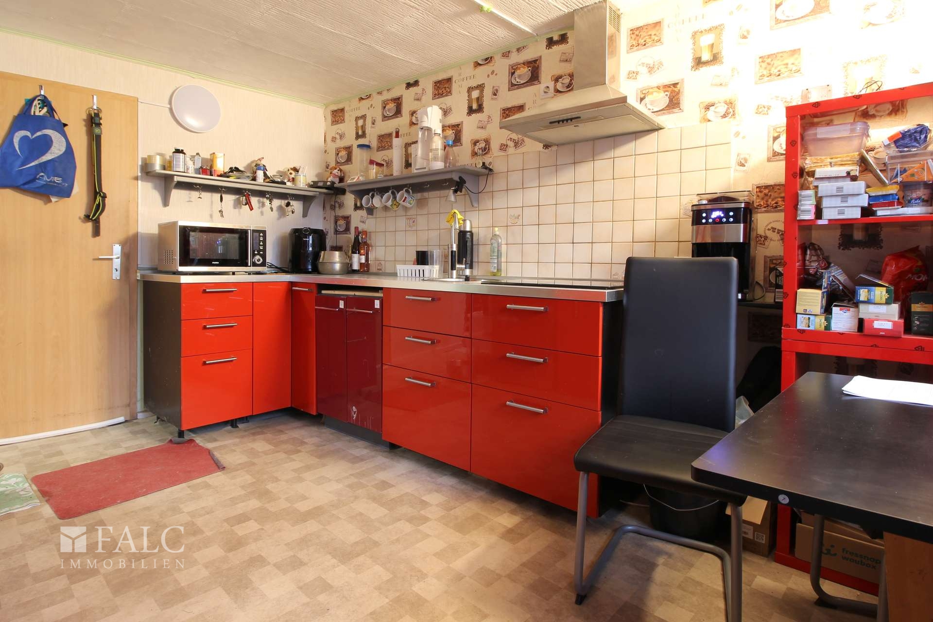 Beim Betreten des Hauses empfängt Sie eine einladende Küche, die im Kaufpreis enthalten ist. Die roten Fronten setzen einen modernen Akzent.