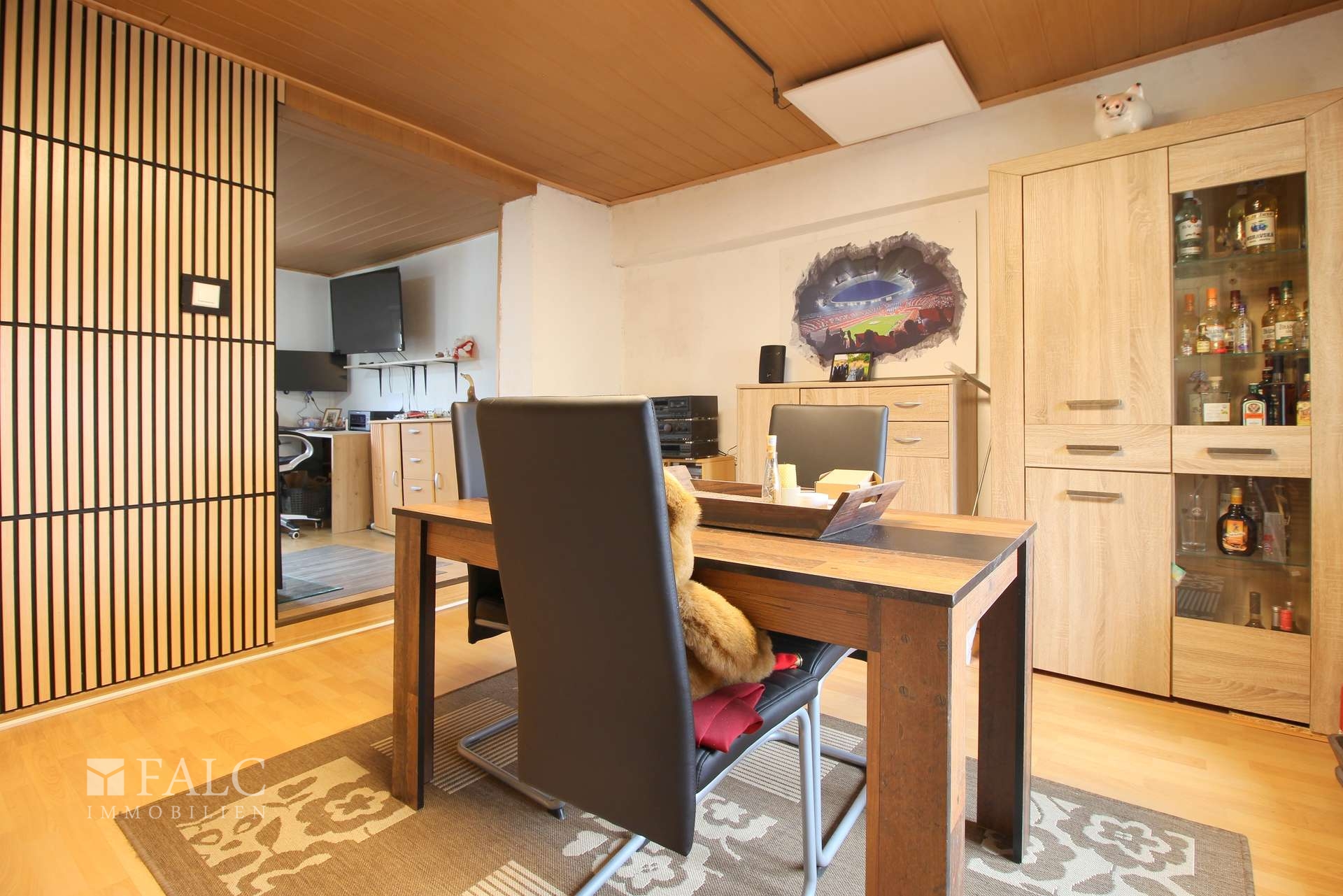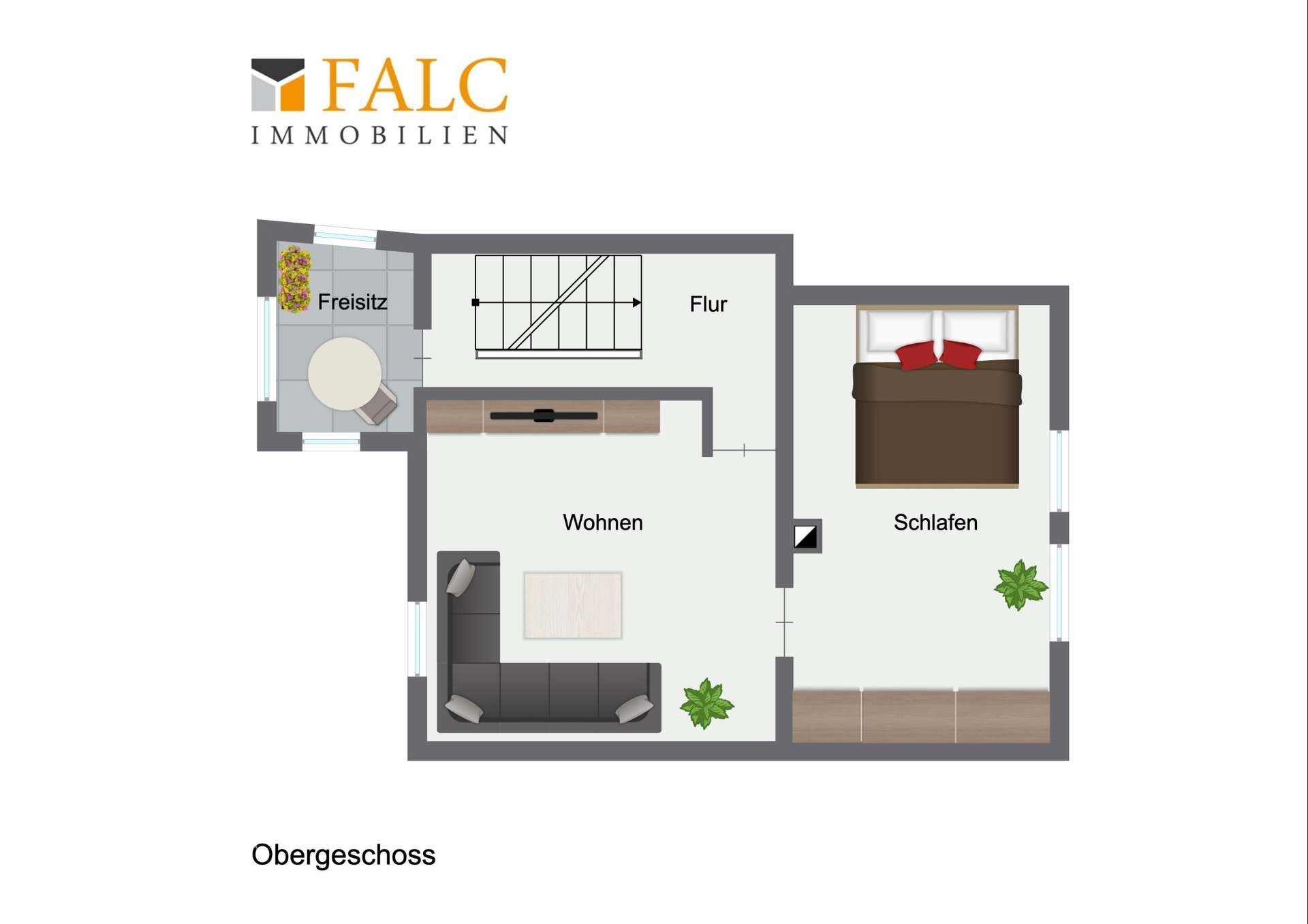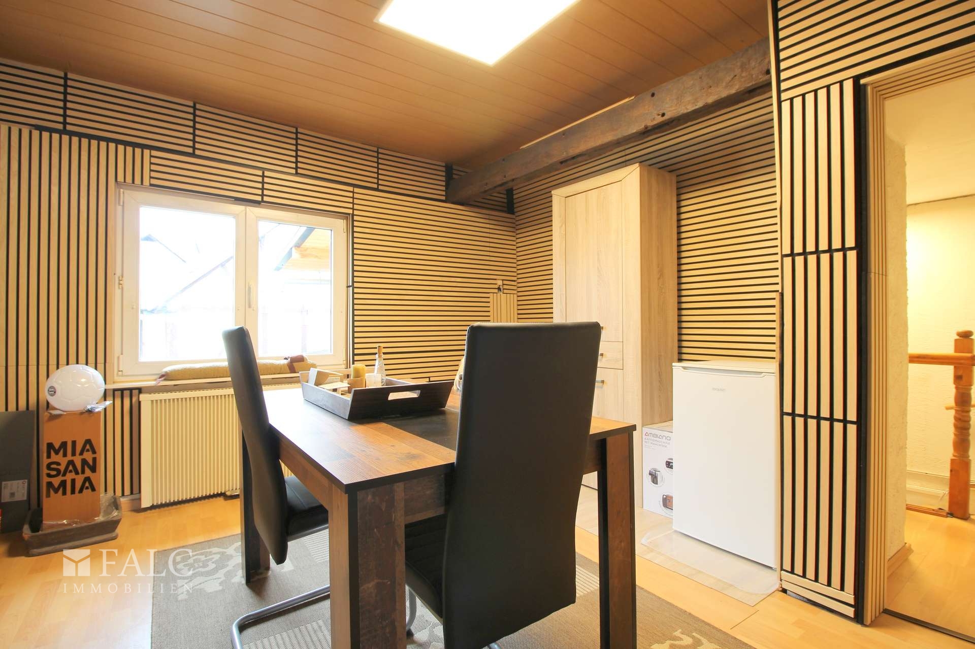 Im Obergeschoss befinden sich das Esszimmer sowie das Schlafzimmer, das durch seine ruhige Lage einen erholsamen Rückzugsort bietet. Der angrenzende Balkon ist als Wintergarten ausgestaltet und lädt dazu ein, den Tag hier mit einem Kaffee zu beginnen.