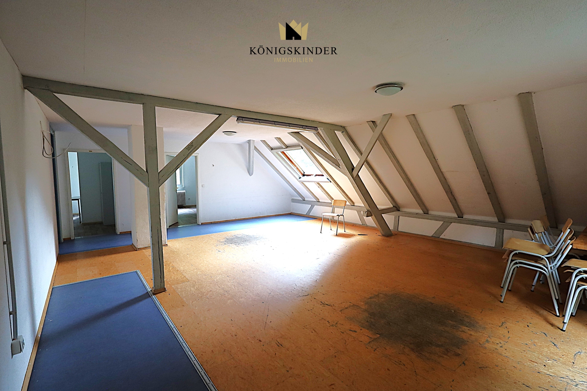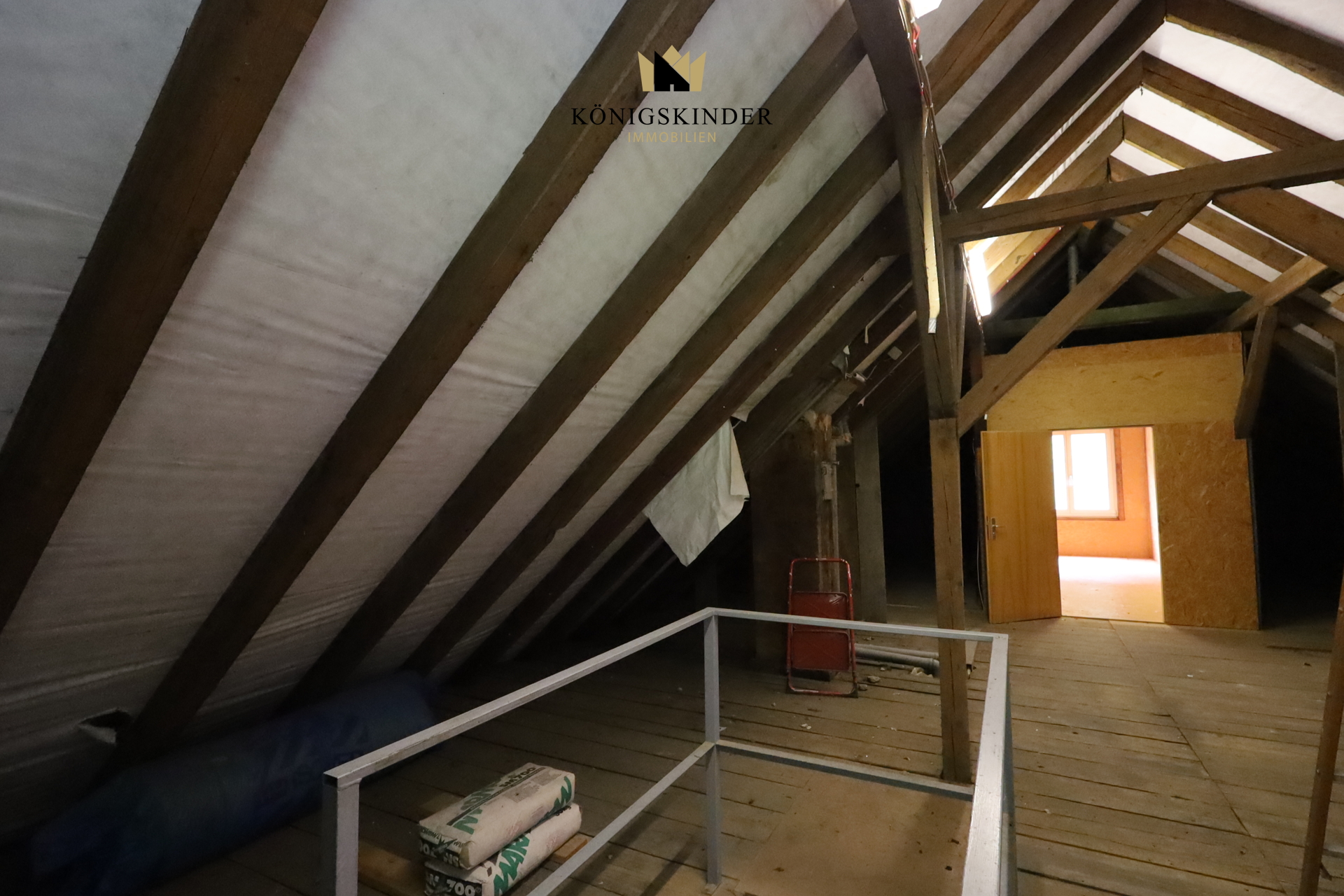 Der Spitzboden hat eine Höhe von über 2,7 m bis zur ersten Balkenlage und ist komplett ausbaufähig; ein Raum wurde zum Ausbau vorbereitet.