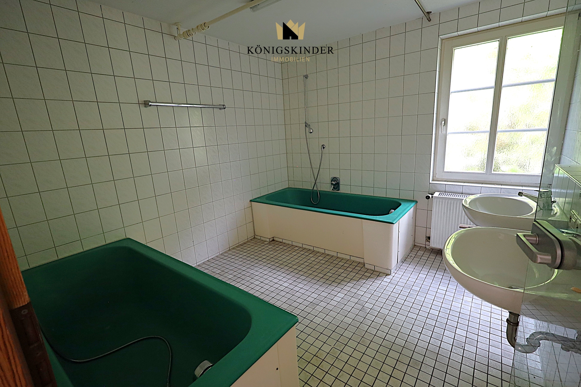 geschützt eingebettet im Tal......umgeben vom herrlichen GrünDas könnte Ihr zukünftiges...Restaurant sein......mit lichthellem Wintergarten......in allen Iahreszeiten...Der Ort für wunderbares ZusammenseinDie Küche müsste noch eingebaut werdenBeispielhaft eines der Zimmer......das war mal ein Büroraumbeispielhaft ein Bad...hier geht's zum......mittealterlichen KellerVon der Terrasse im 1. Obergeschoss...hat man einen freien Blick ins Tal...und zur Südterrasse vor dem Wintergarten... der Dachraum für viele MöglichkeitenFreizeitzimmer, Versammlungsraum, Spielezimmer...Darüber der ausbaufähige......Spitzboden - alles schon vorbereitetbarrierefreier Zugang zur StraßeDas klösterliche SchmuckstückBlickfang vor dem Kloster