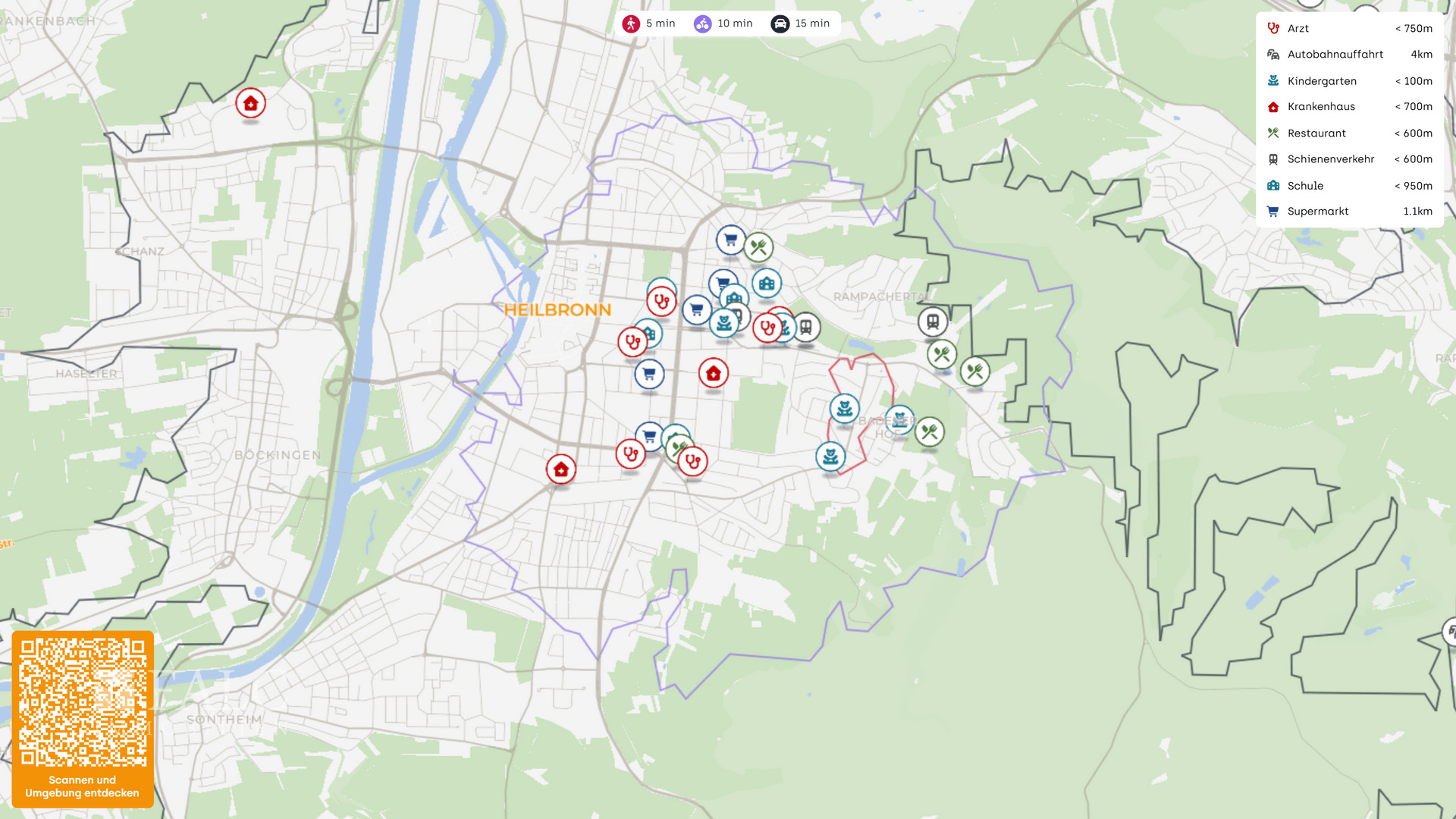 Die Heilbronner Innenstadt mit ihren vielfältigen Shopping-, Gastronomie- und Kulturangeboten ist schnell erreichbar. Auch der Bildungscampus mit Hochschule, Schulen und modernen Einrichtungen liegt in bequemer Distanz und unterstreicht die dynamische Entwicklung der Stadt als innovativer Wirtschafts- und Bildungsstandort.