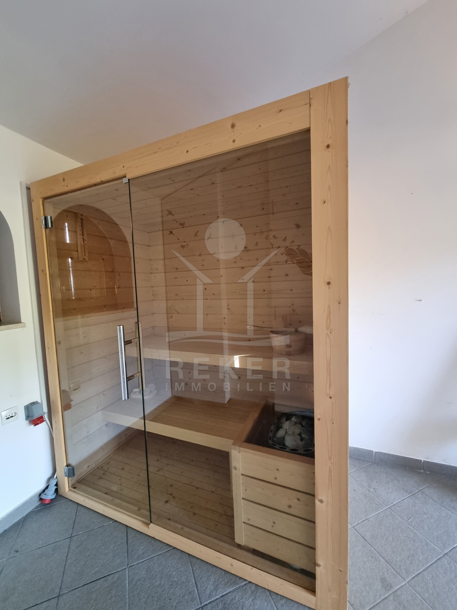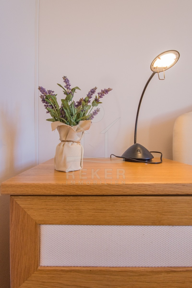 Wohnen auf einer Ebene mit 2 Schlafzimmern, Kamin im Wohnzimmer und neu angeschaffter Sauna in der Garage – hier genießen Sie durchdachten Komfort. Die Klimaanlage sorgt ganzjährig für angenehmes Raumklima. Der gepflegte Garten mit rund 300 m² schafft zusätzlichen Freiraum.