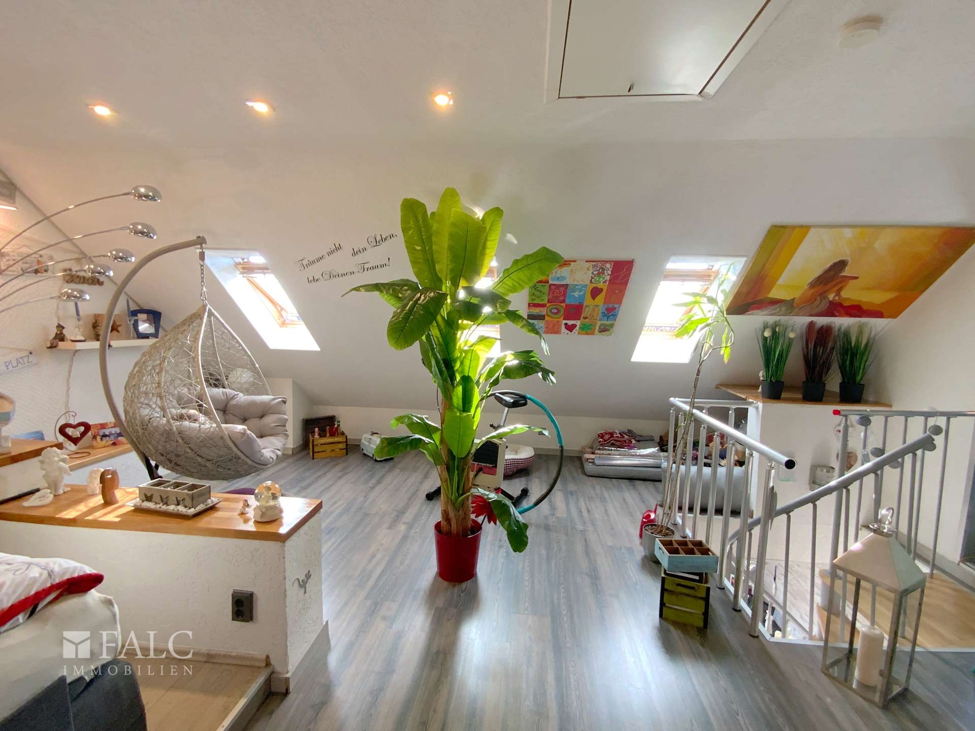 - neue Marken-Einbauküche - Klimaanlagen - elt. Rollläden - Hochwertige Plissees an den Fenstern - gemütliche Loggia in südl. Ausrichtung - teilweise Steinoptik/Rauhputz an den Innenwänden - Schlafzimmer im Dachstudio - Ankleide im Dachstudio - Glasfaseranschluss