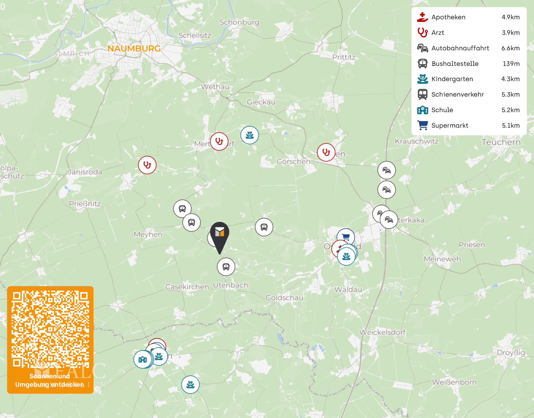 Der Anschluss an die Autobahn A9 ist in wenigen Minuten erreichbar, was eine schnelle Verbindung nach Halle/Leipzig oder Jena ermöglicht. Auch für Berufspendler ins nahegelegene Gewerbegebiet Osterfeld bietet sich mit dieser Immobilie eine gute Möglichkeit einen kurzen Arbeitsweg zu realisieren.