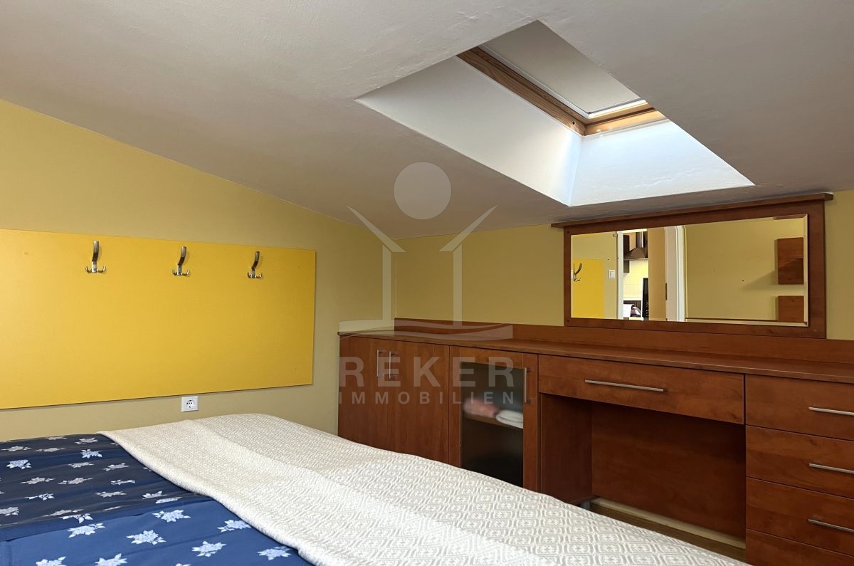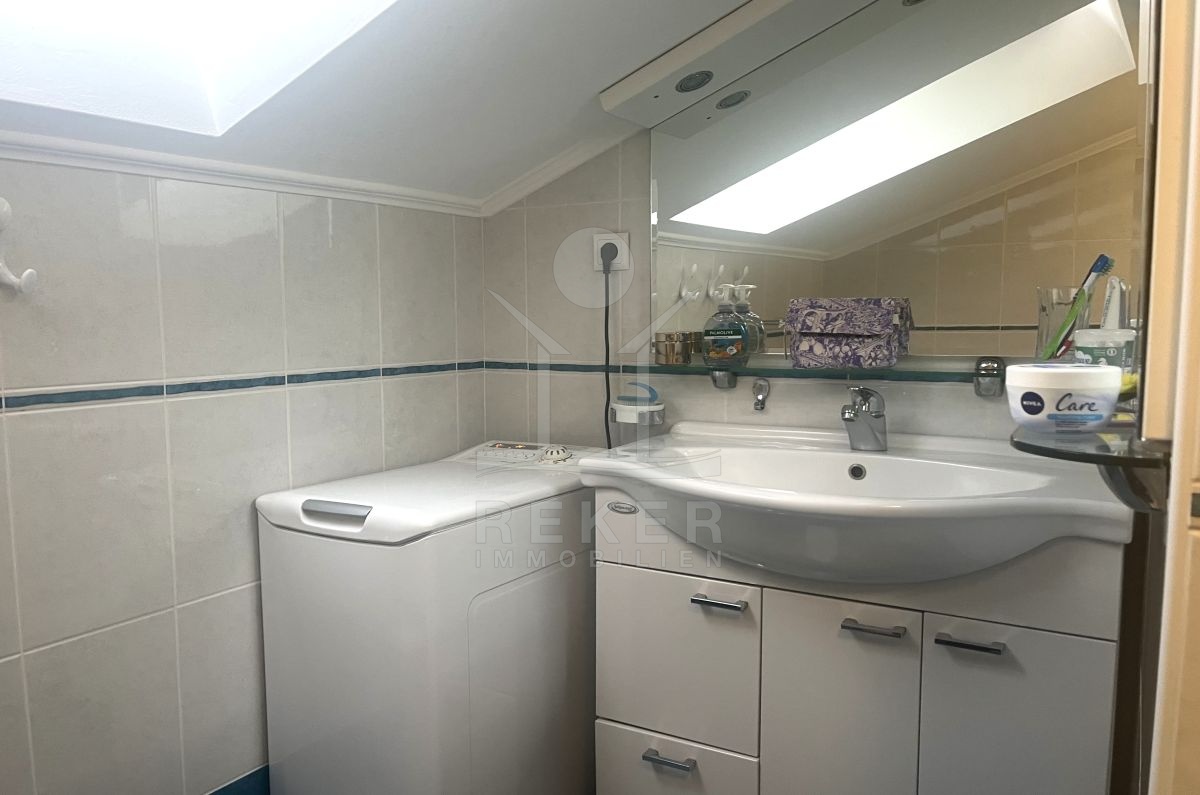 Diese Wohnung in Malinska auf der Insel Krk richtet sich an Käufer, die Ruhe und Nähe zum Meer verbinden möchten. Sie wohnen nur 450 m entfernt und erreichen die Küste bequem. Die Lage im zweiten Obergeschoss bietet einen freien Blick auf das Meer. Zwei eigene Parkplätze gehören ebenfalls dazu.