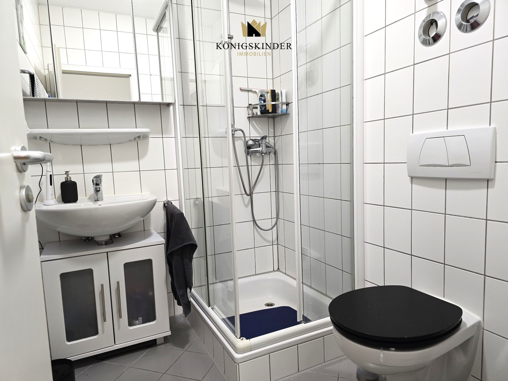 Das Badezimmer ist innenliegend, funktional und zurückhaltend gestaltet, unterstützt durch eine Entlüftung für ein angenehmes Raumgefühl.