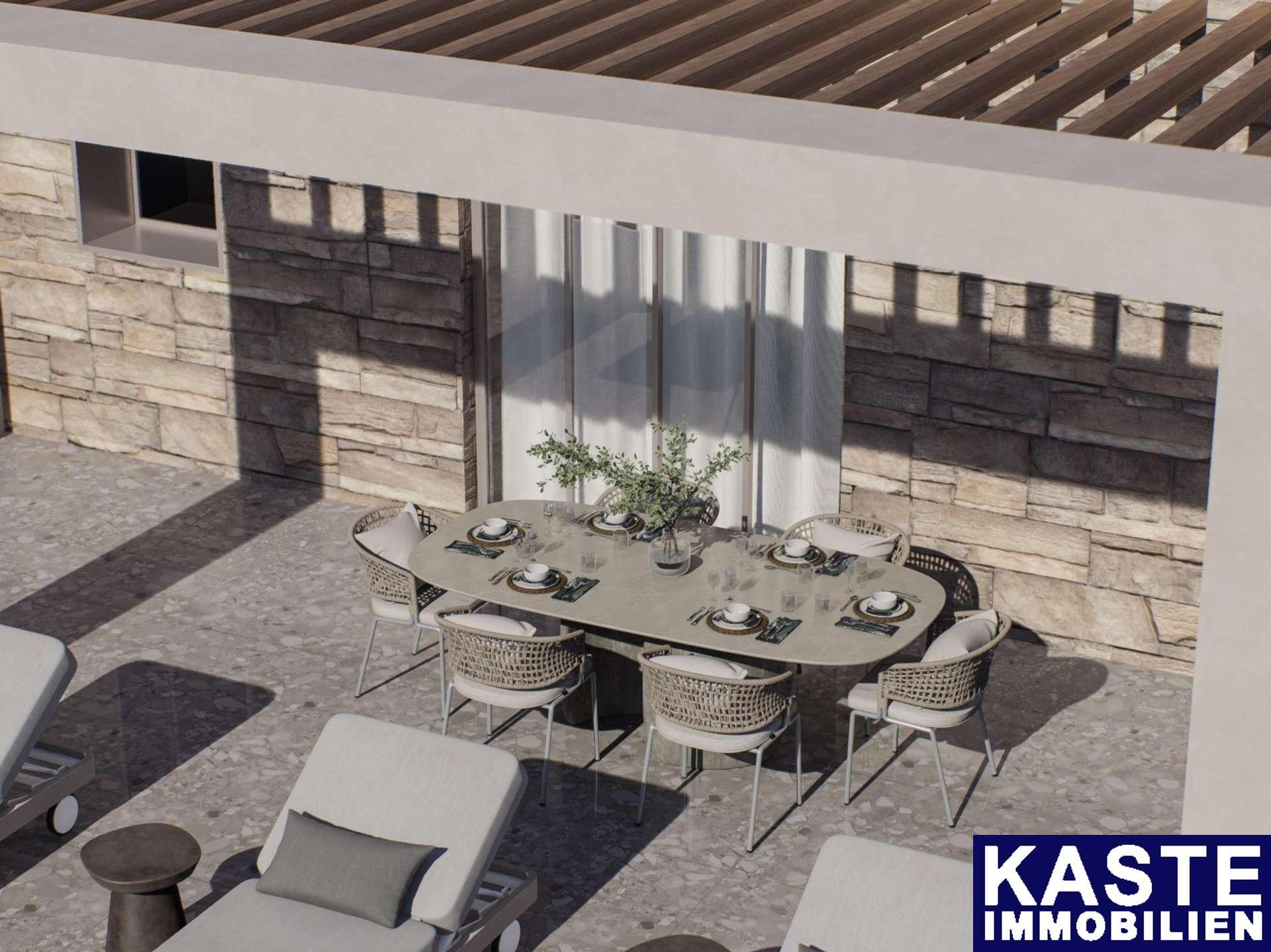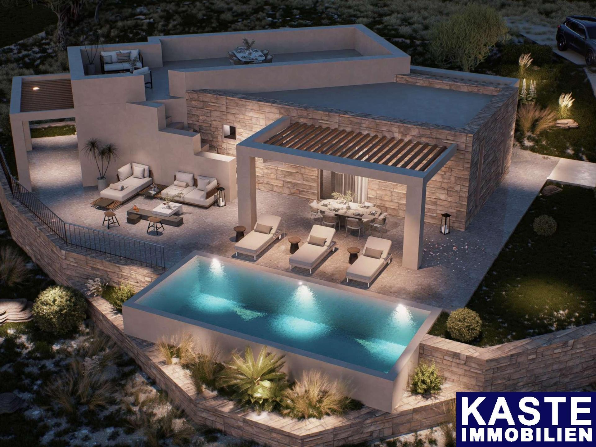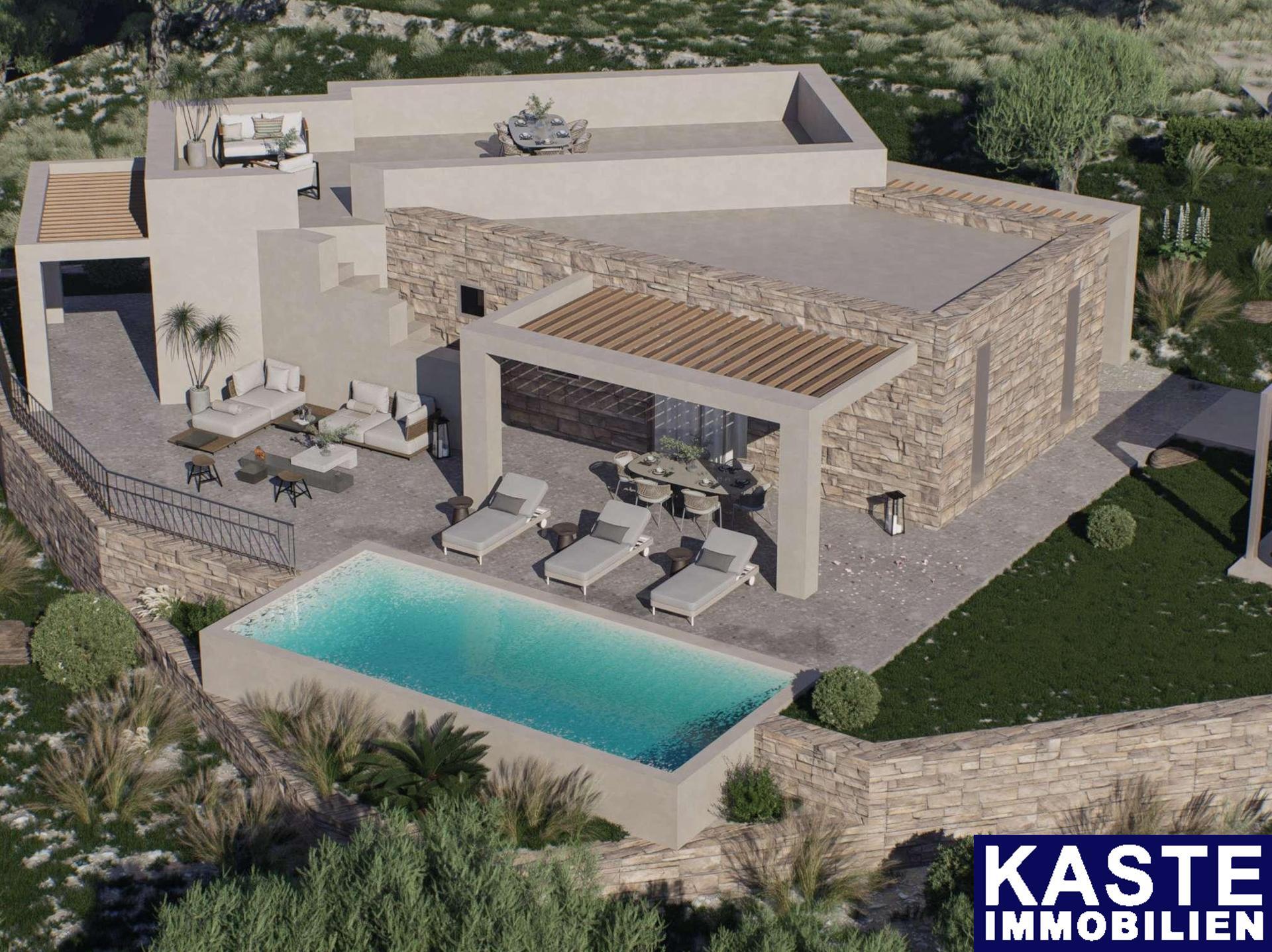 Dieses bemerkenswerte Anwesen befindet sich derzeit im Bau und wird voraussichtlich innerhalb von 12 Monaten fertiggestellt sein. Es wird nach den höchsten modernen Standards in Bezug auf Sicherheit, Energieeffizienz und Bauqualität errichtet und vereint dabei besondere architektonische Elemente, die Moderne und Tradition verbinden. Die Verwendung von weißem lokalem Stein in Kombination mit traditionellem Verputz ermöglicht eine harmonische Integration in die umgebende Landschaft.