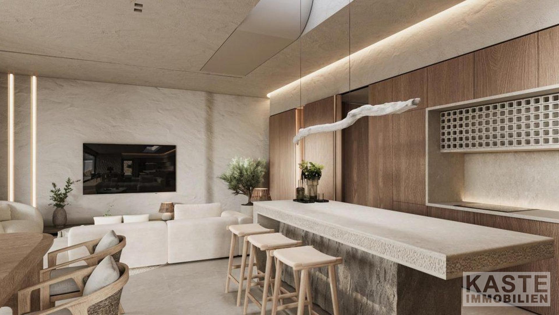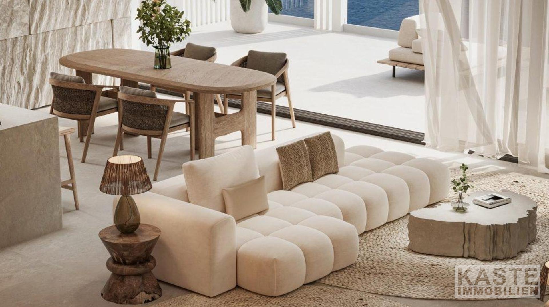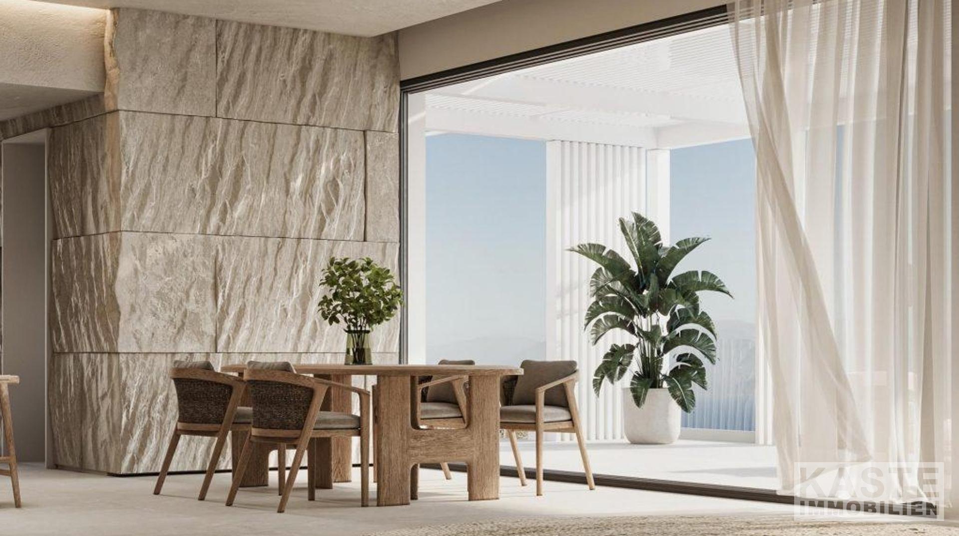 Innenausstattung: Die lichtdurchfluteten und offen gestalteten Räumlichkeiten umfassen einen geräumigen Empfangs- und Essbereich, eine moderne Küche sowie drei großzügige Schlafzimmer, jeweils mit eigenem Bad und Gästegarderobe. Die Hauptbereiche bieten direkten Zugang zu Terrassen und spektakulären Ausblicken.