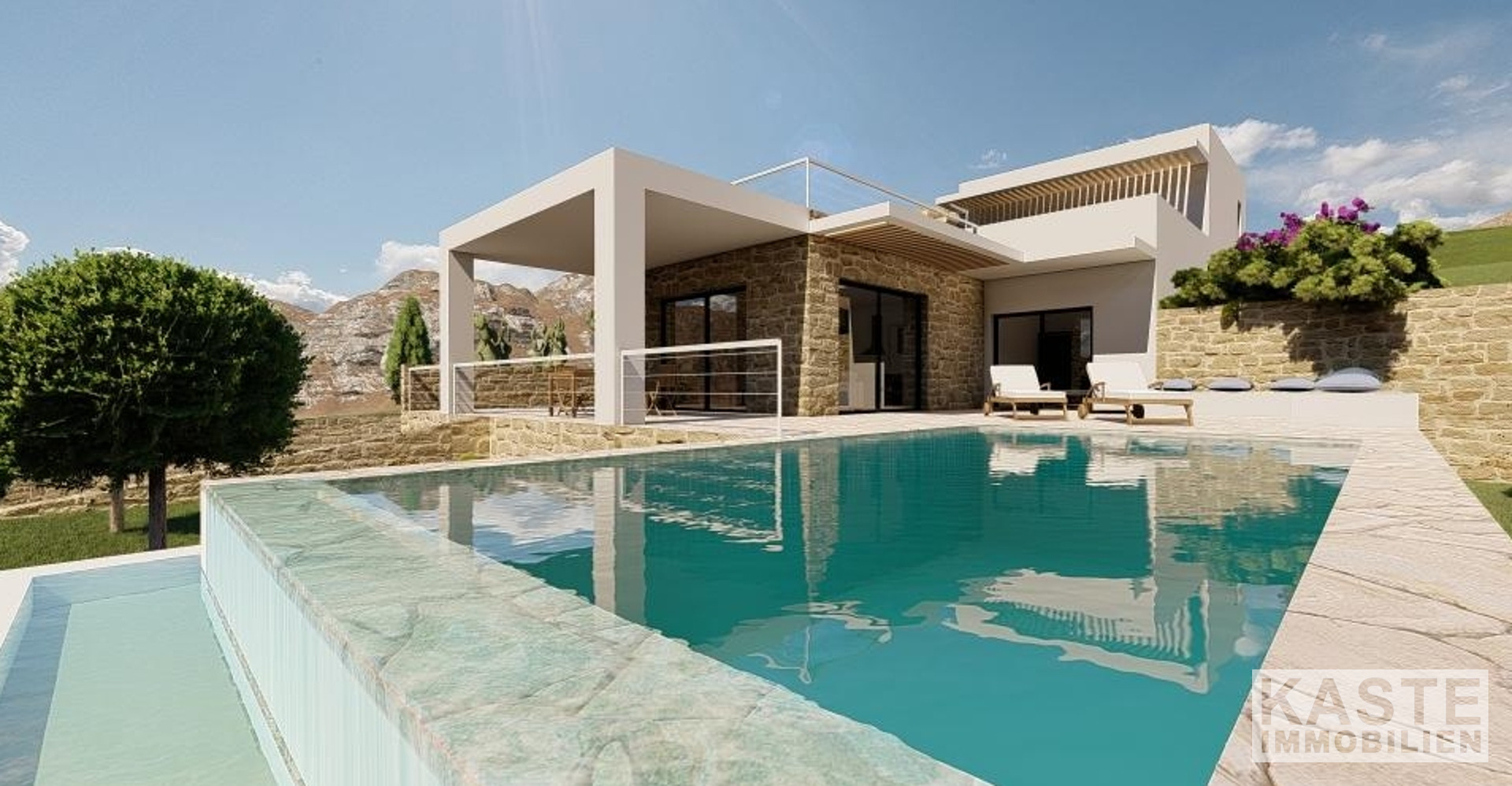 Zum Verkauf steht eine Neubau-Villa in Kamilari, die auf einem großzügigen 530 m² Grundstück errichtet wird. Die Immobilie verfügt über eine Baugenehmigung für ein 130 m² großes Gebäude. Das geplante Haus besticht durch ein modernes Design und wird drei Schlafzimmer, zwei Badezimmer und eine offene Wohnküche umfassen. Ein Highlight ist der ansprechend gestaltete Garten mit Pool und atemberaubendem Ausblick auf das Dorf und das Meer. Die Lage ist privilegiert und bietet unverbaubare Panoramablicke. In unmittelbarer Nähe finden sich Tavernen, Bäckereien, Cafés und Minimärkte, die das tägliche Leben bereichern.