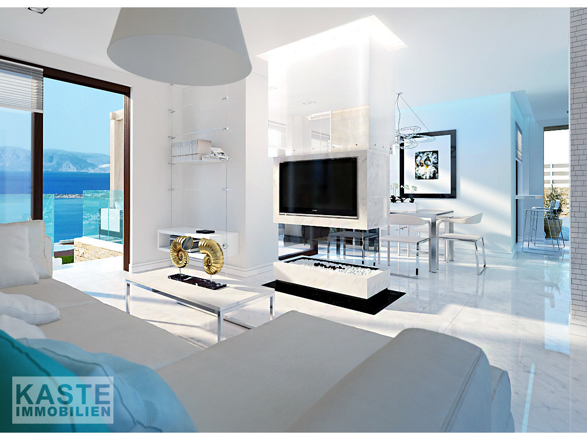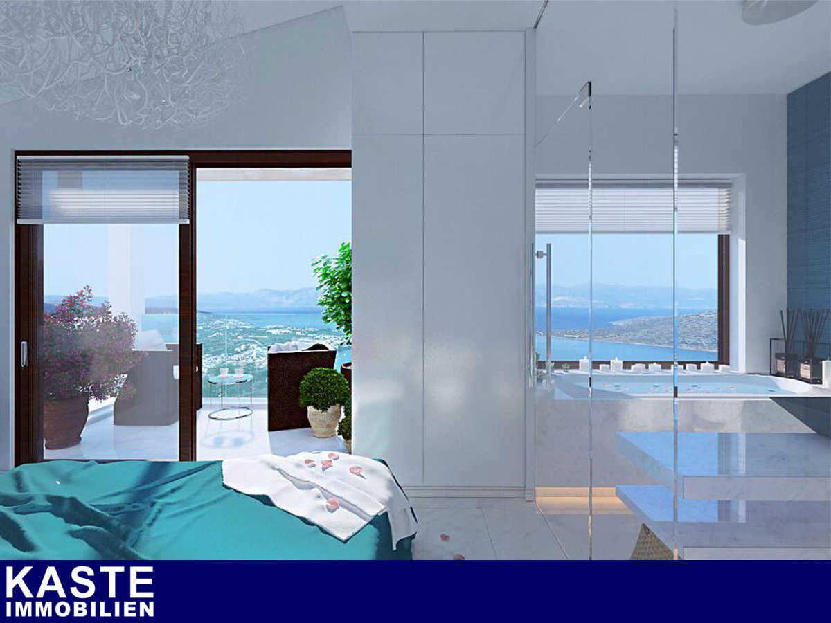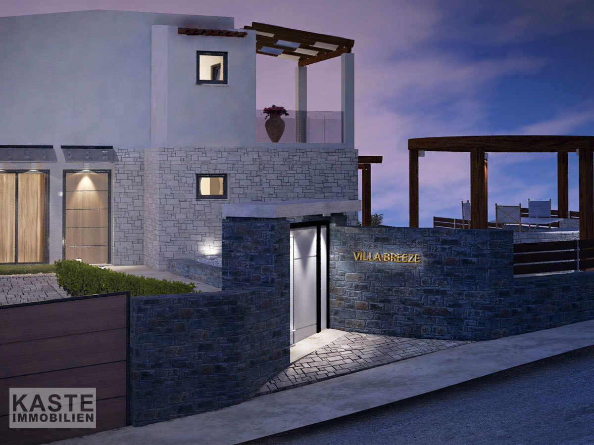 Mit spektakulärem Meerblick sowohl vom Wohnbereich als auch von den Balkonen aus, eröffnet diese einzigartige, neu errichtete Villa im Norden Kretas eine mediterrane Atmosphäre auf einem weitläufigen Grundstück mit über 1600 Quadratmetern Fläche.