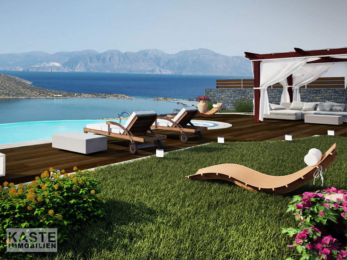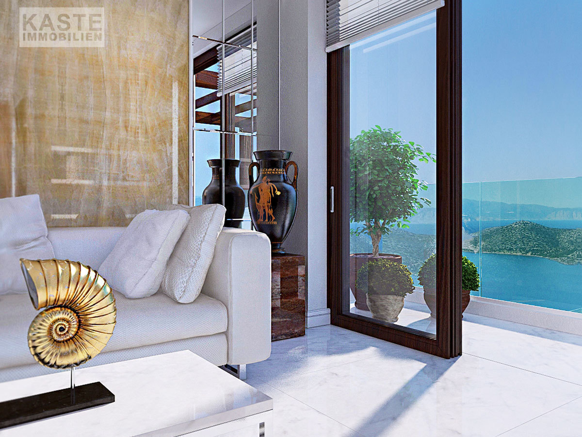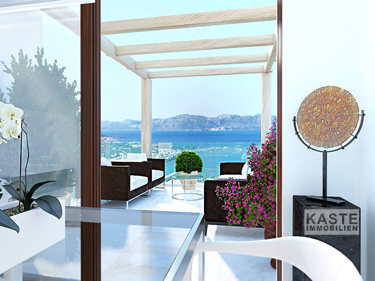 Mit spektakulärem Meerblick sowohl vom Wohnbereich als auch von den Balkonen aus, eröffnet diese einzigartige, neu errichtete Villa im Norden Kretas eine mediterrane Atmosphäre auf einem weitläufigen Grundstück mit über 1600 Quadratmetern Fläche.