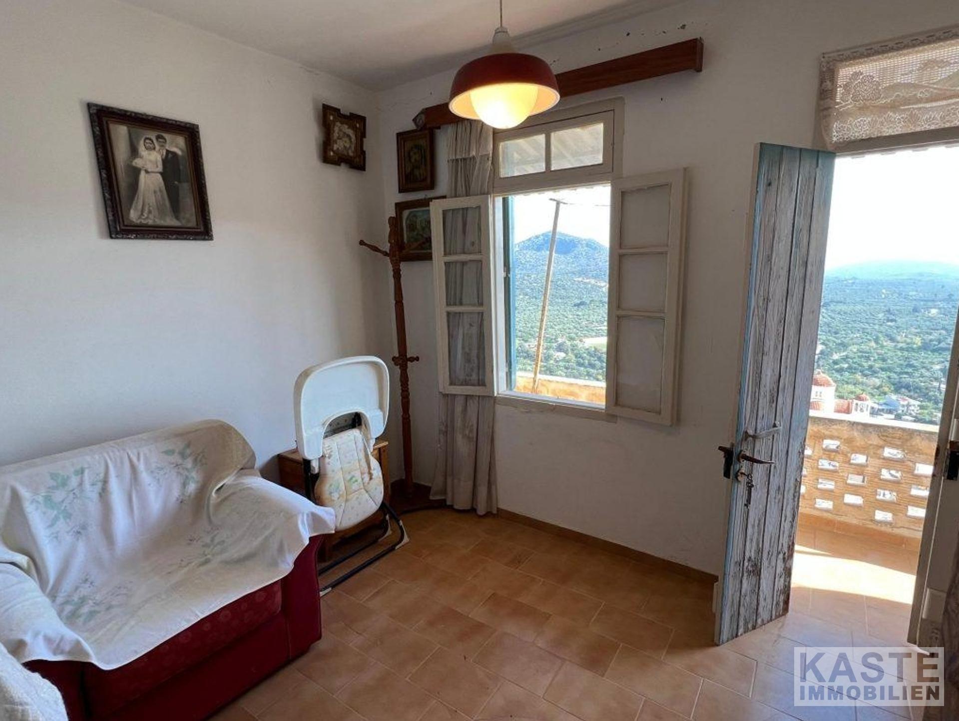 Im Erdgeschoss finden sich drei geräumige Zimmer, von denen zwei miteinander verbunden sind, während sich im Obergeschoss drei weitere Zimmer befinden, die ausschließlich über den Balkon an der Vorderseite des Gebäudes miteinander verbunden sind. Von diesem Balkon sowie den oberen Zimmern aus eröffnet sich ein atemberaubender Ausblick auf das Tal, die majestätischen Berge ringsum und das glitzernde Meer in der Ferne.