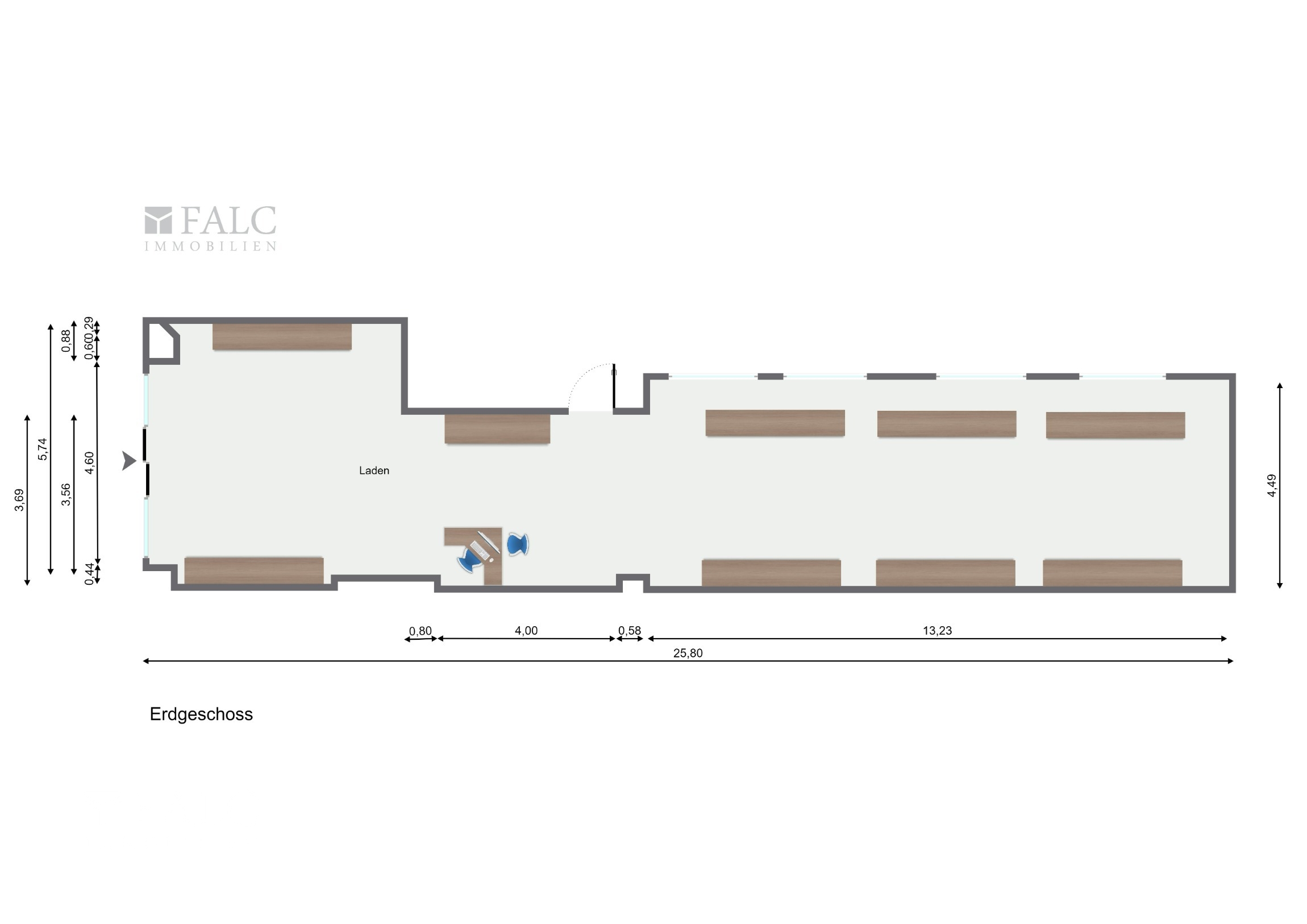 Für dieses Ladenlokal ermöglichen wir Ihnen jederzeit eine virtuelle 3D-Besichtigung. Diese erreichen Sie über das Feld Anbieter kontaktieren. Geben Sie dort bitte Ihre Kontaktdaten ein und Sie bekommen im Anschluss per Mail ein ausführliches Exposé und zusätzlich den 3D-Rundgang zugesendet.