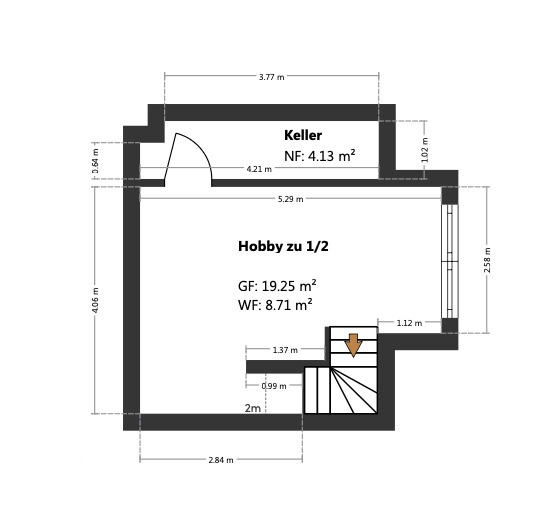 Hier steht ein großzügiger Hobbyraum (anteilig mit 50 % zur Wohnfläche angerechnet) zur Verfügung, der sich hervorragend als Arbeits-, Fitness- oder Kreativbereich eignet. Ergänzt wird diese Ebene durch einen separaten Kellerraum mit zusätzlicher Abstellfläche.