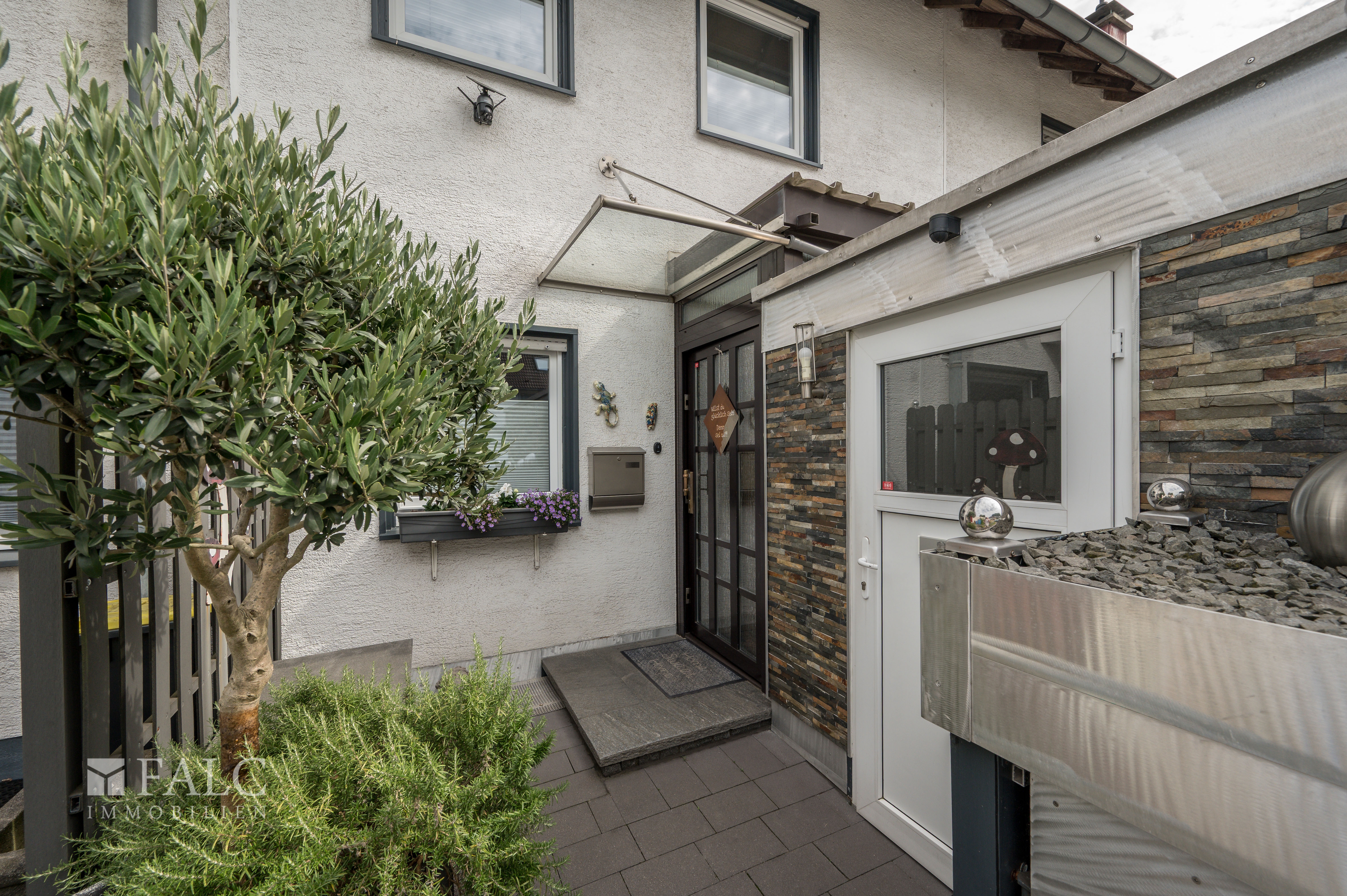 - Garten/Terrasse Oase Gabionenwände mit Zuwegung und Koibecken - Sauna - 3 Bäder - 3 Schlafzimmer - Unterkellert - Fußbodenheizung - Hochwertige Naturstein- und Echtholzparkettböden - Weißer Feinputz - Weiße Holztüren - Individuell angefertigte Einbauschränke - Elektrische Rollläden - Garage (Elektrisches Sektionaltor, Wasser + Stromanschluss) mit zwei vorgelagerten Stellplätzen