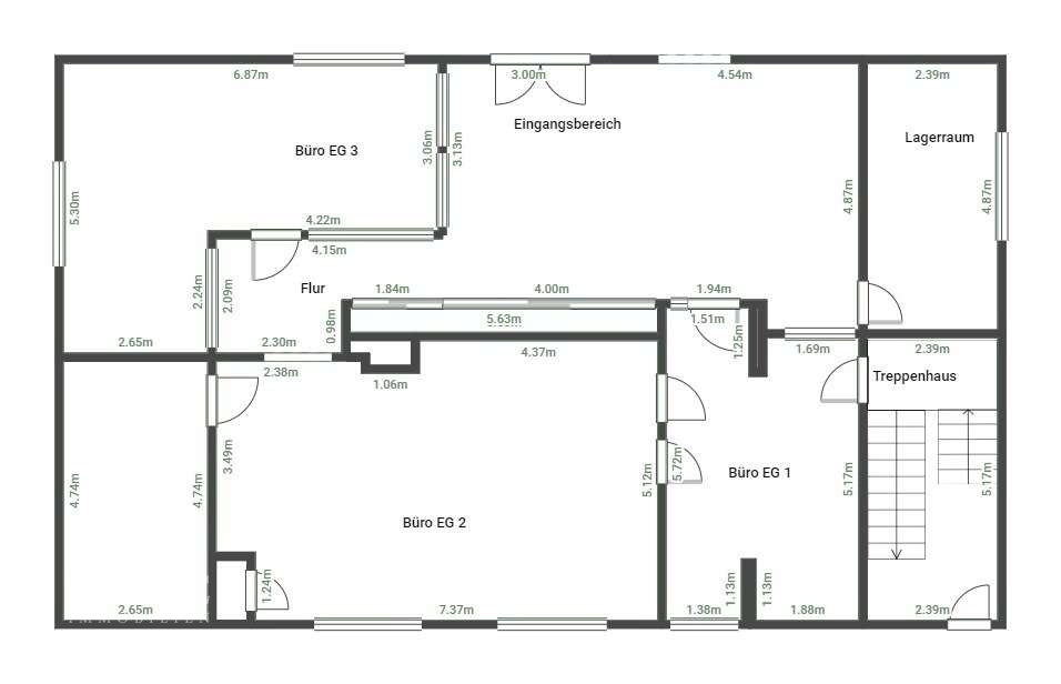 Bei der Immobilie handelt es sich um Büroräume oder Lagerflächen von 148 m² im Erdgeschoss, mit einer Laderampe. Optional stehen 76 m² Keller als Lagerfläche zur Verfügung.