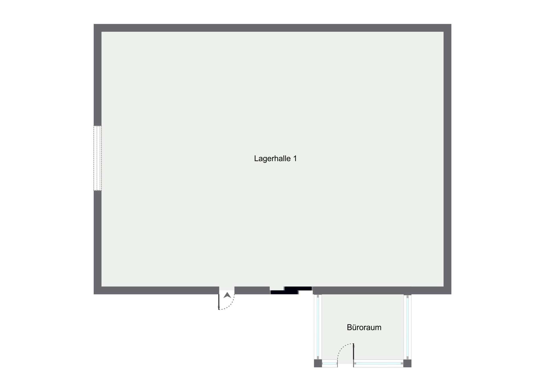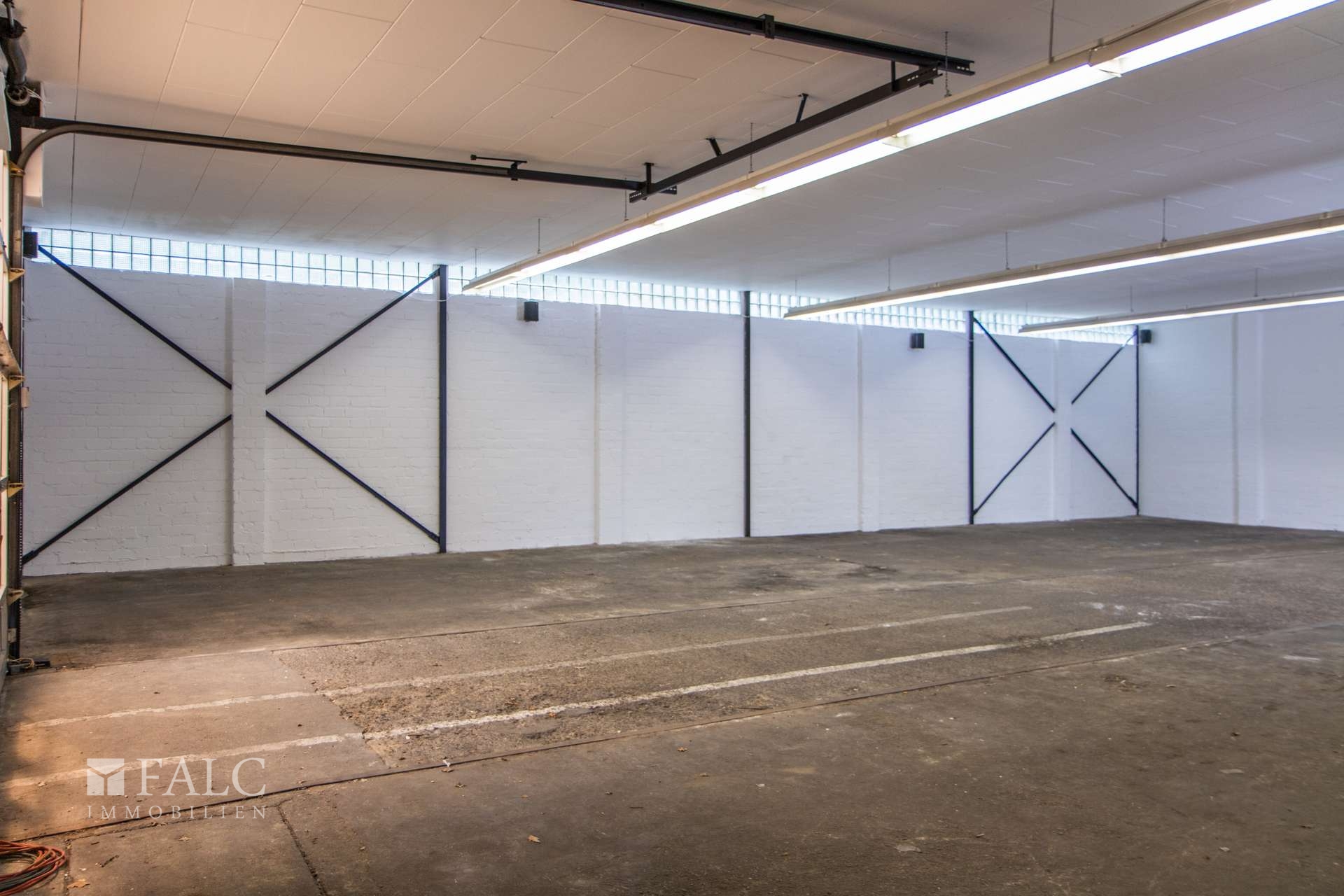 - Lagerhalle mit ca. 283 m² - separater Büro-/Mitarbeiterraum mit 19 m² - zwei Eingänge zur Lagerhalle - automatisches Rolltor - große Parkplatz- und Außenfläche