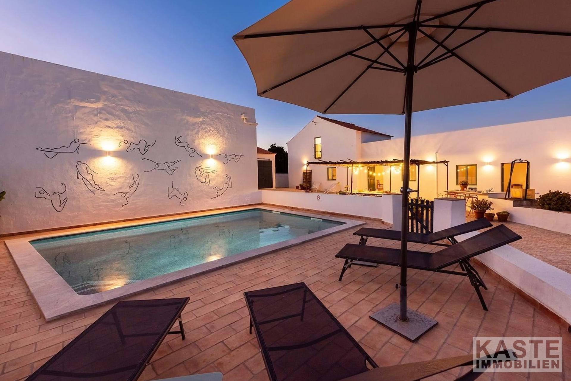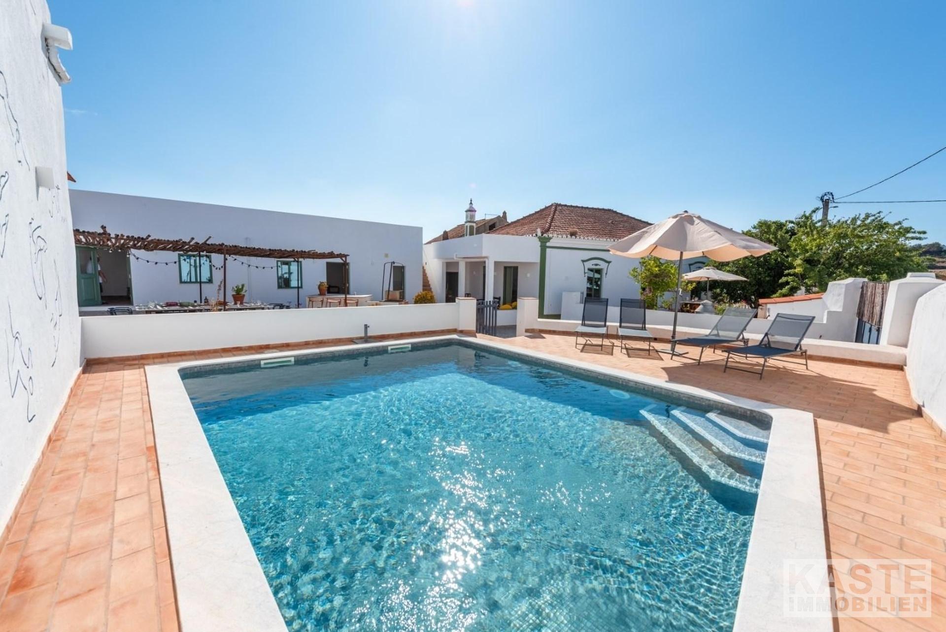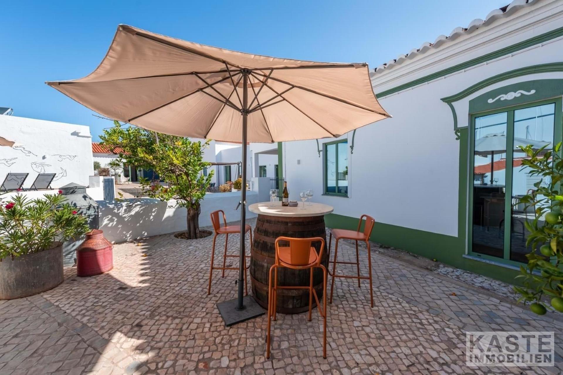 Zum Verkauf steht ein wunderschönes, neu renoviertes Designer-Landhaus an der Algarve, das sowohl modernen Komfort als auch den Charme vergangener Epochen bewahrt hat. Das Anwesen liegt in dem malerischen Dorf Amorosa, was übersetzt "liebevoll" bedeutet. Es befindet sich nur 5 Minuten von der lebhaften Marktstadt São Bartolomeu de Messines und weniger als 15 Minuten von der historischen ehemaligen Algarve-Hauptstadt Silves entfernt. Die einzigartige Anordnung der Unterkünfte wurde mit viel Liebe zum Detail und Stil hervorragend restauriert.