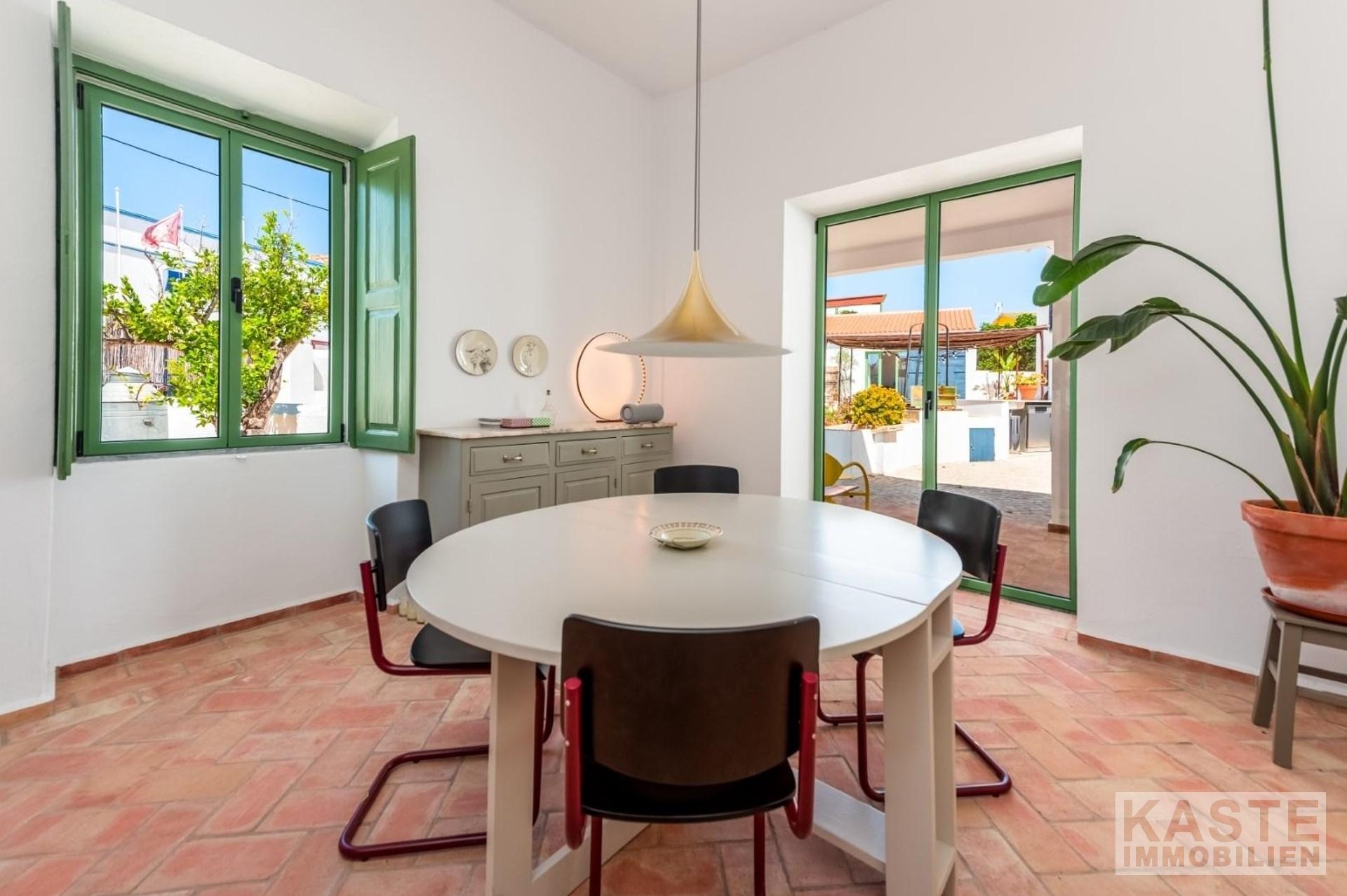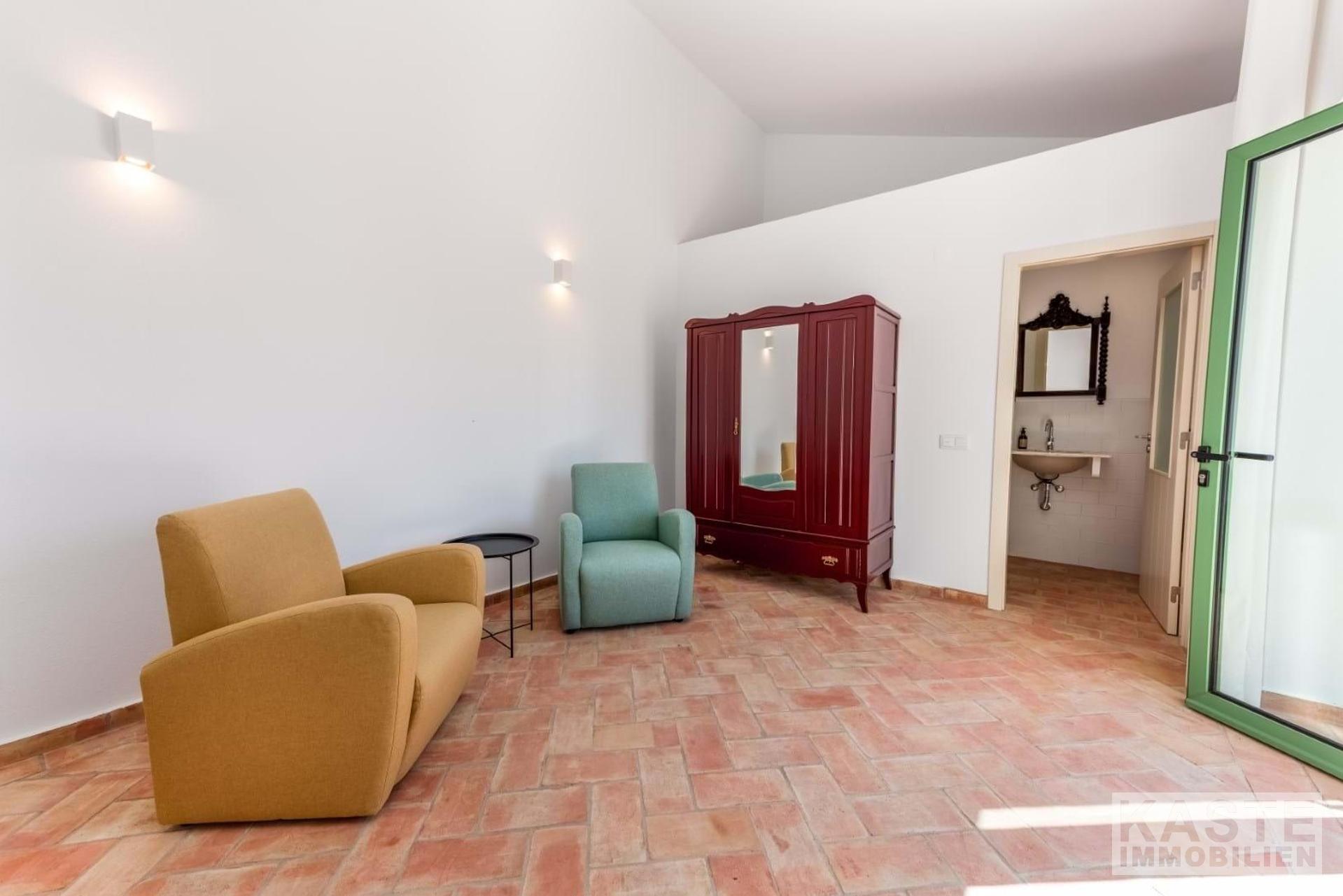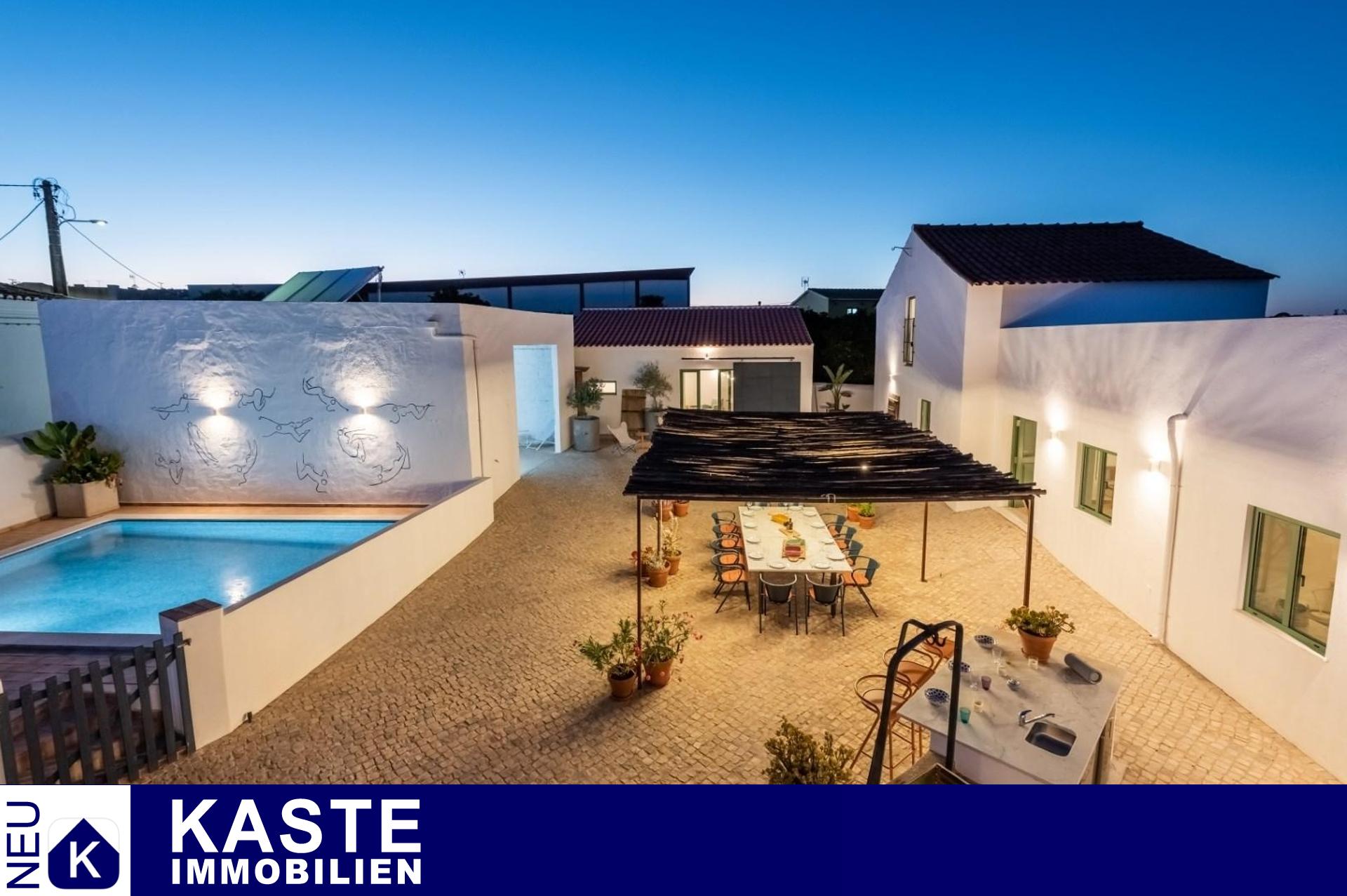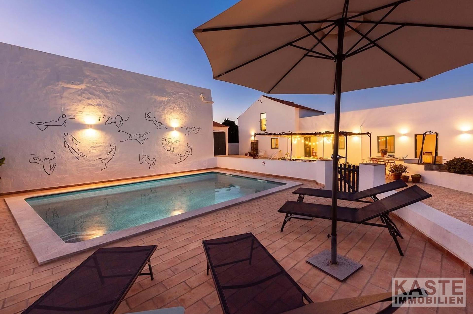 Zum Verkauf steht ein wunderschönes, neu renoviertes Designer-Landhaus an der Algarve, das sowohl modernen Komfort als auch den Charme vergangener Epochen bewahrt hat. Das Anwesen liegt in dem malerischen Dorf Amorosa, was übersetzt "liebevoll" bedeutet. Es befindet sich nur 5 Minuten von der lebhaften Marktstadt São Bartolomeu de Messines und weniger als 15 Minuten von der historischen ehemaligen Algarve-Hauptstadt Silves entfernt. Die einzigartige Anordnung der Unterkünfte wurde mit viel Liebe zum Detail und Stil hervorragend restauriert.