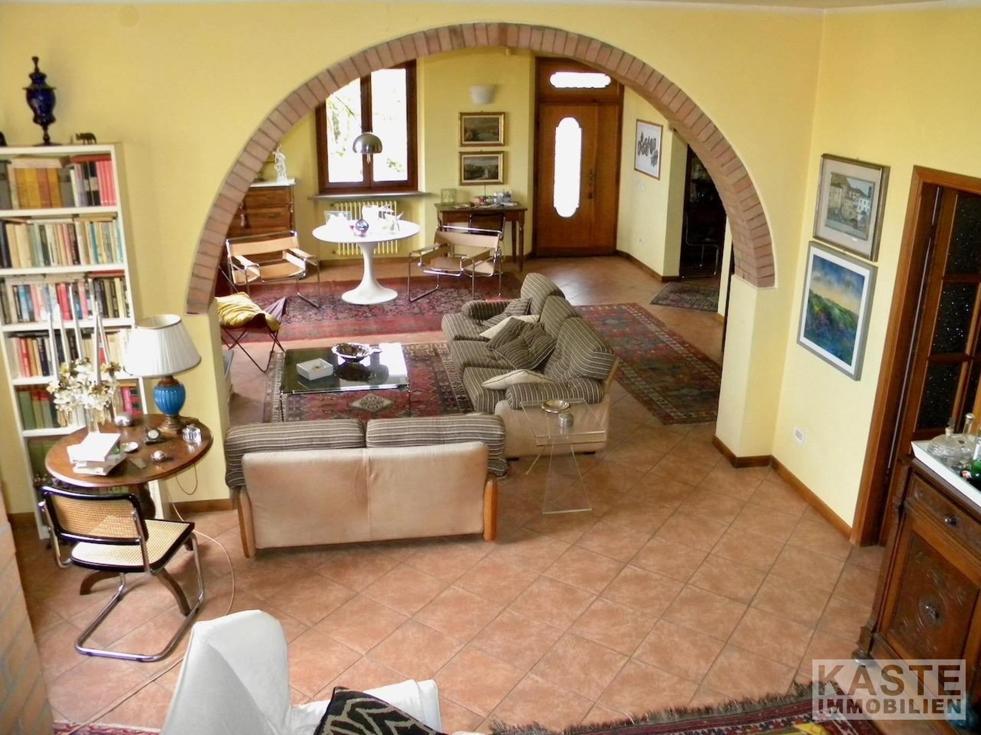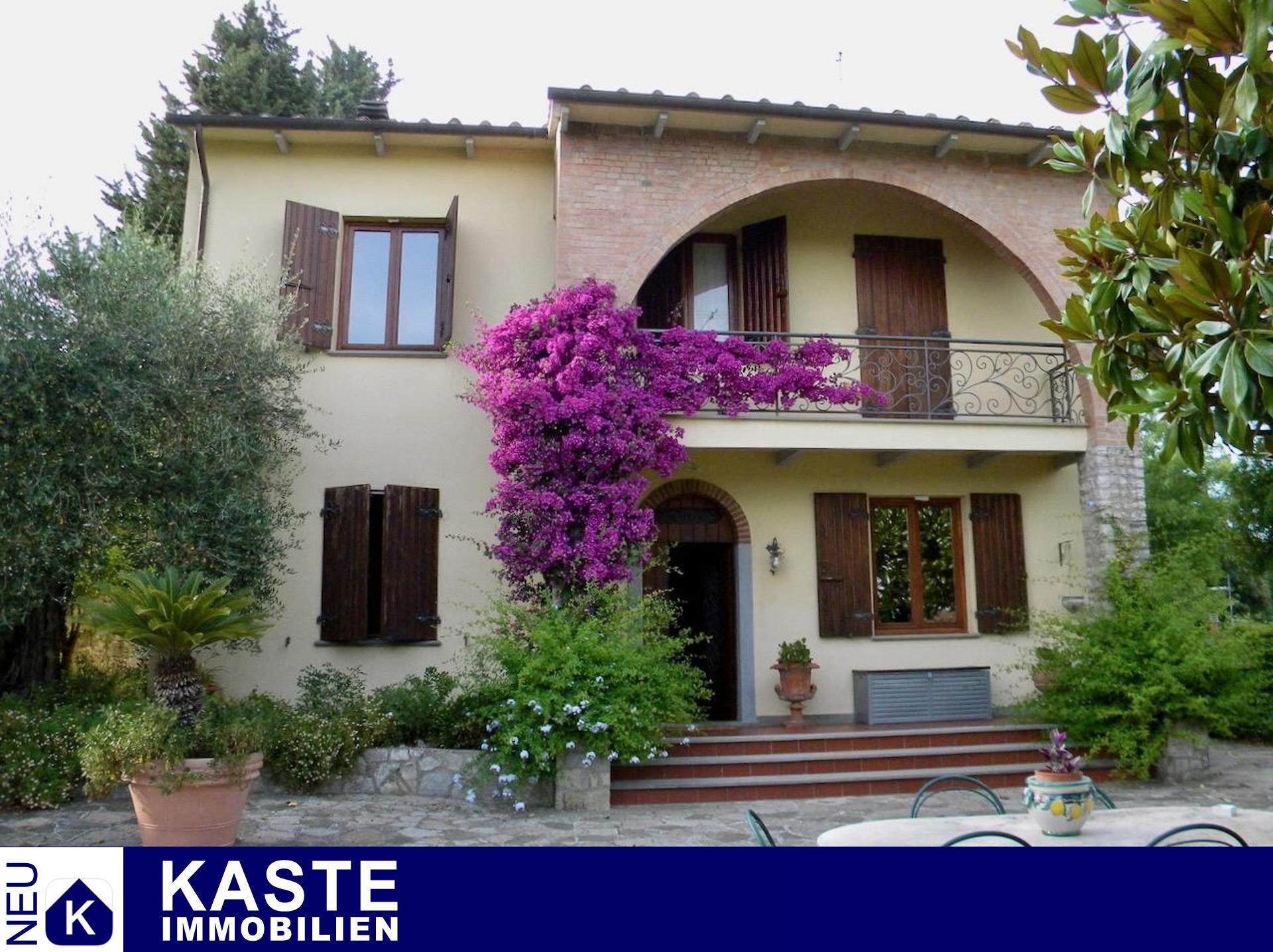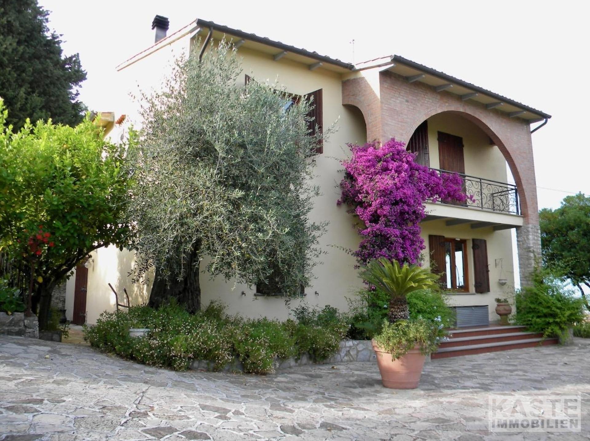 In den sanften Hügeln der toskanischen Gemeinde Casciana Terme Lari, umgeben von üppigem Grün und mit atemberaubendem Panoramablick, befindet sich eine prächtige Einzelvilla von 258 m², ergänzt durch zwei separate Nebengebäude - eines von 49 m² und das andere von 30 m². Das gesamte Anwesen erstreckt sich über einen herrlichen Garten und Land von insgesamt 27.760 Quadratmetern, was fast drei Hektar entspricht. Auf dem Gelände finden sich etwa 300 Olivenbäume sowie malerische Weinberge. Der Zugang zum Anwesen erfolgt über eine private Straße.