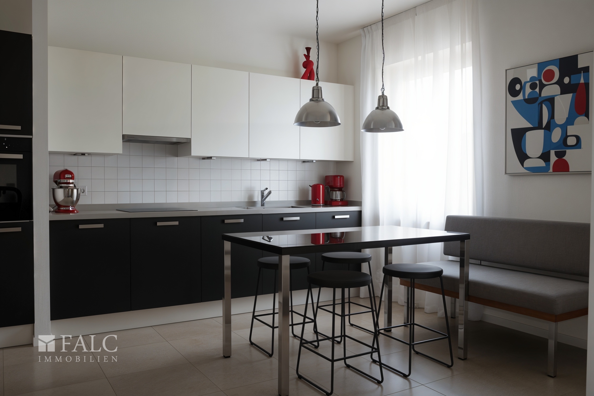 Die vorhandene Einbauküche inklusive Spülmaschine, Backofen und Herd ist bereits im Kaufpreis enthalten.