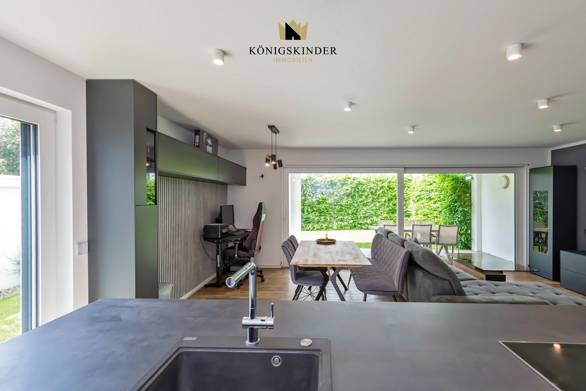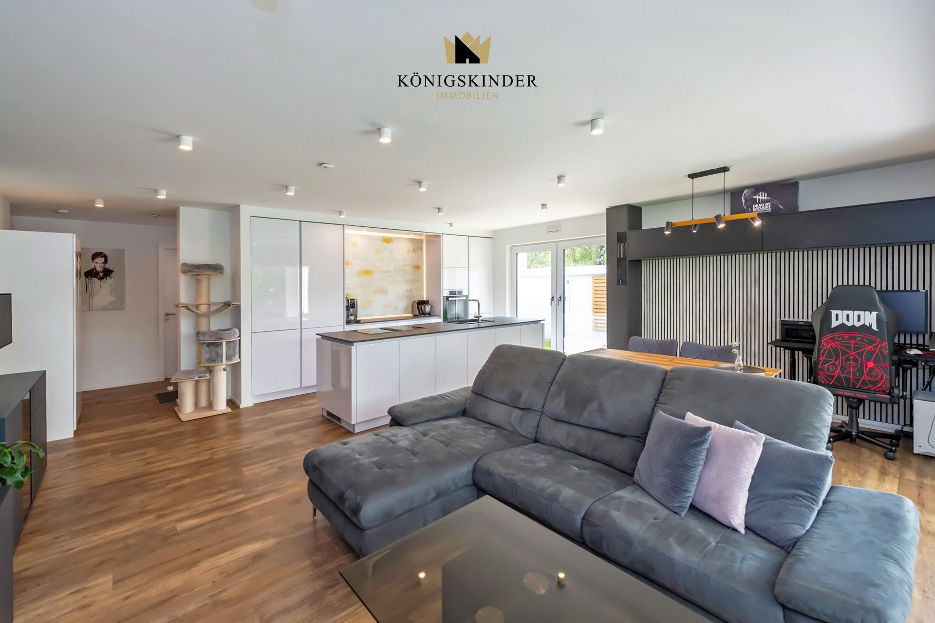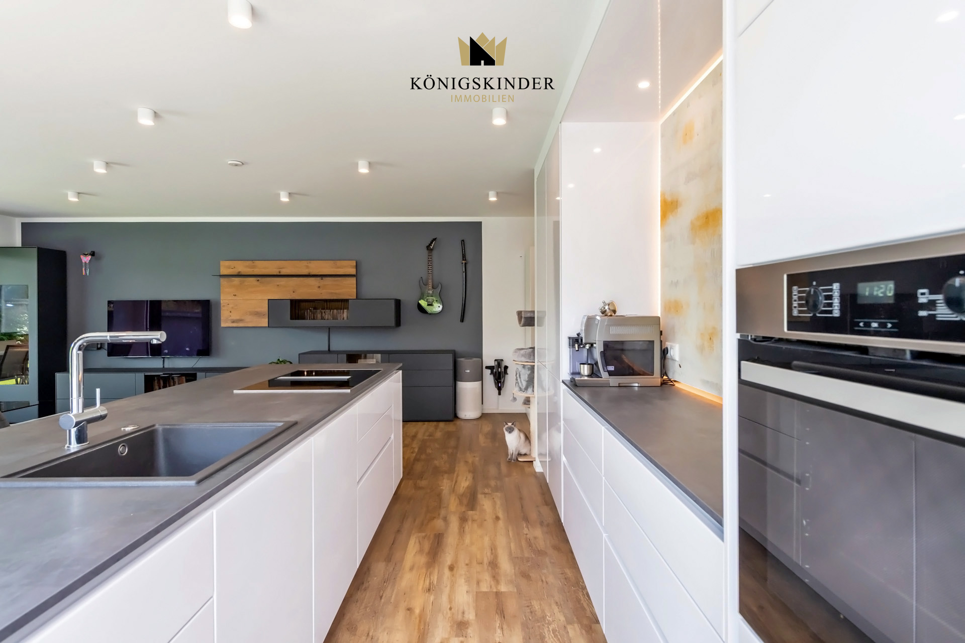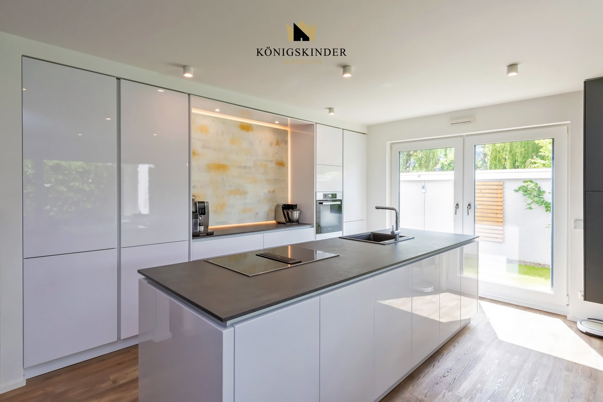 - Einbauküche mit Kochinsel: Spülbecken, Backofen, Cerankochfeld, Spülmaschine, Kühlschrank mit Gefrierfach, Dunstabzug (Umluft). Elektrogeräte der Marke Miele- Badezimmer mit Wanne, Dusche, Doppelwaschbecken, WC. - Gäste WC - 3-Fachverglaste Kunststofffenster + Rollläden/ Jalousien - Glasfaser - Vollständige Smarthome Installation (Marke: Loxone): Steuerung von Licht, Jalousien/ Rollläden, Fußbodenheizung, schaltbare Steckdosen, etc. - Großer Garten mit Gerätehäuschen und Grillplatz - Überdachte Terrasse - Videosprechanlage mit Kamera - Mineralischer Putz im Innenbereich: Der Mineral putz ist mit Malervlies beklebt und weiß gestrichen (Samtige Oberfläche). - Fußbodenheizung - Fußböden: Vinyl, Fliesen - Kellerraum
