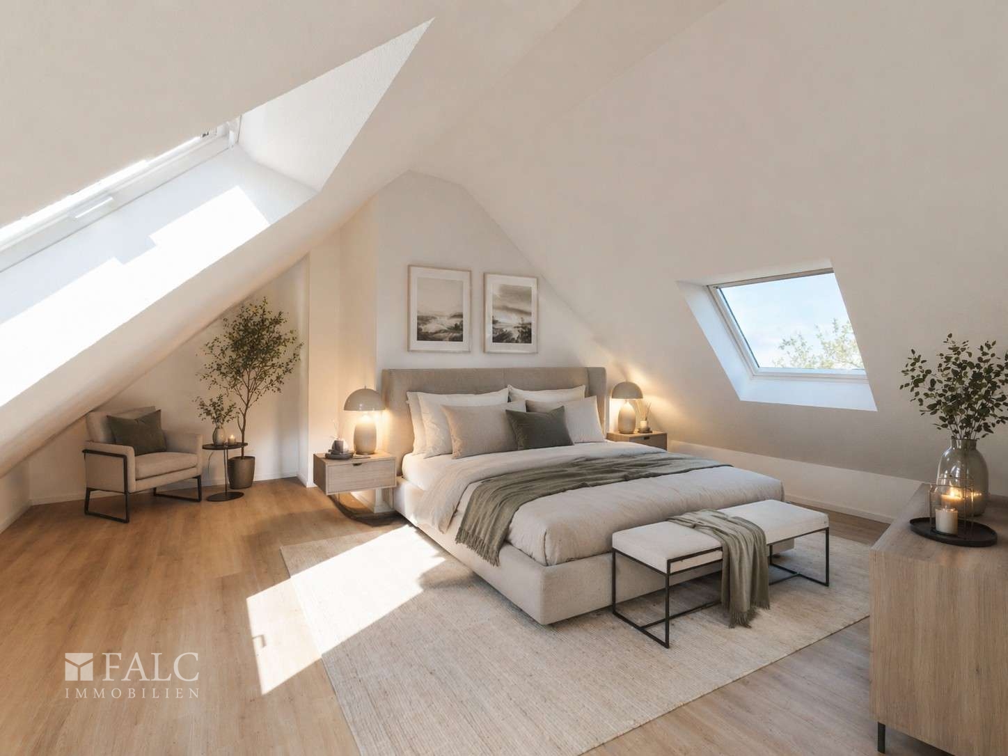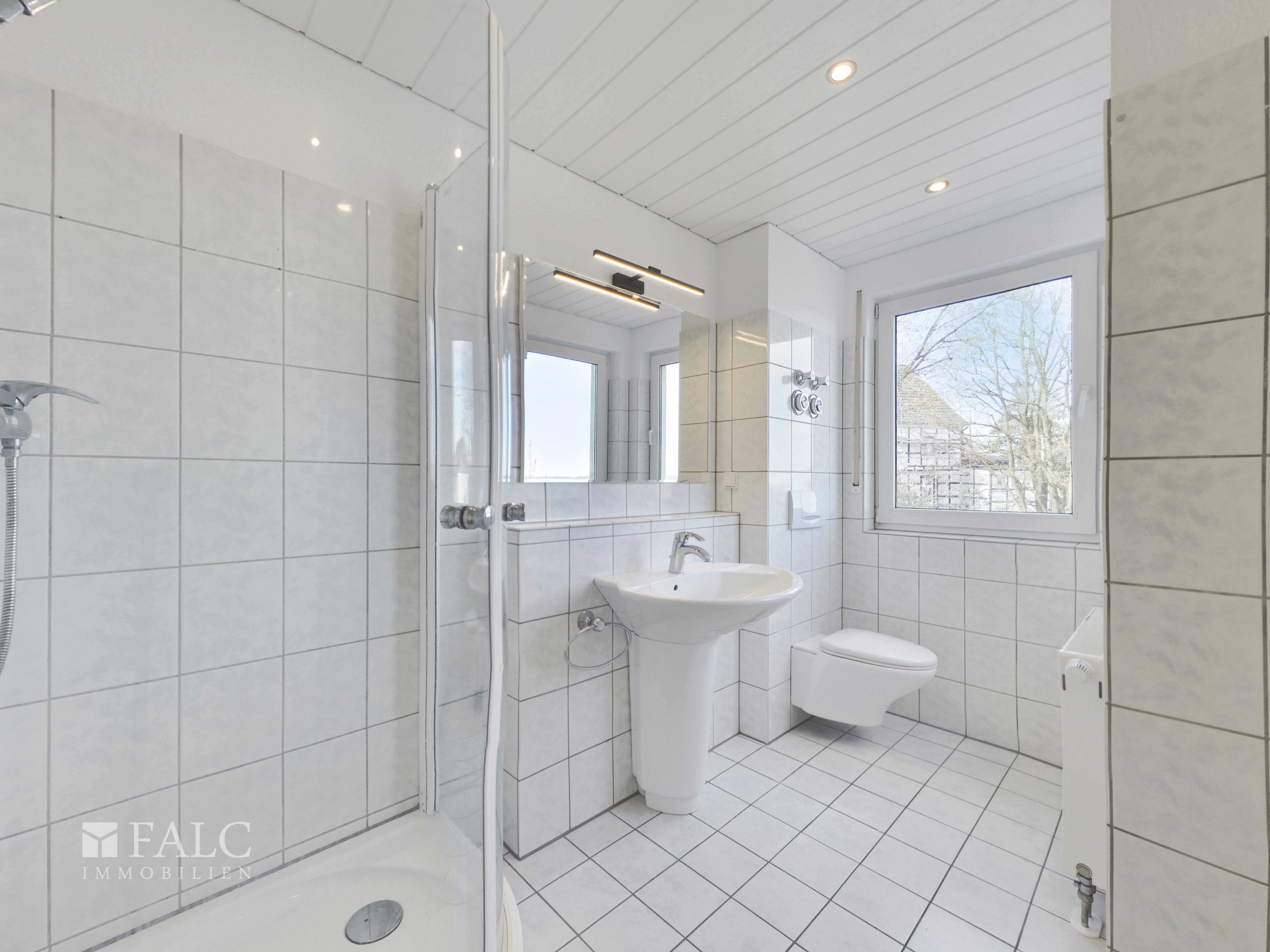Die untere Wohnebene bildet den Lebensmittelpunkt: Ein großzügiger, lichtdurchfluteter Wohnbereich in dem bodentiefe Doppelflügel-Fenstertüren den Raum zur sonnigen Südwest-Loggia öffnen. Ergänzt wird diese Ebene durch eine separate Küche sowie zwei vielseitig nutzbare Zimmer – ideal als Schlafzimmer, Kinderzimmer oder stilvolles Homeoffice. Von hier aus eröffnet sich ein weiter Blick ins Grüne sowie über die Dächer von Schwelm – ein Ausblick, der den Alltag angenehm entschleunigt. Das Tageslichtbad überzeugt mit einer Kombination aus Dusche und Badewanne und präsentiert sich in zeitlos eleganter, weiß-grauer Gestaltung. Ein praktischer Einbauschrank in der Diele sorgt für zusätzlichen, unauffälligen Stauraum. Über eine Buchentreppe gelangen Sie in die obere Ebene, den ausgebauten Spitzboden, der harmonisch in das Wohnkonzept integriert wurde. Hier erwartet Sie ein weiterer großzügiger Raum, der sich hervorragend als privater Rückzugsort oder Hauptschlafzimmer eignet. Das zusätzliche Badezimmer mit Dusche sowie die vorhandene Sauna verwandeln diese Ebene in einen ganz persönlichen Wellnessbereich.