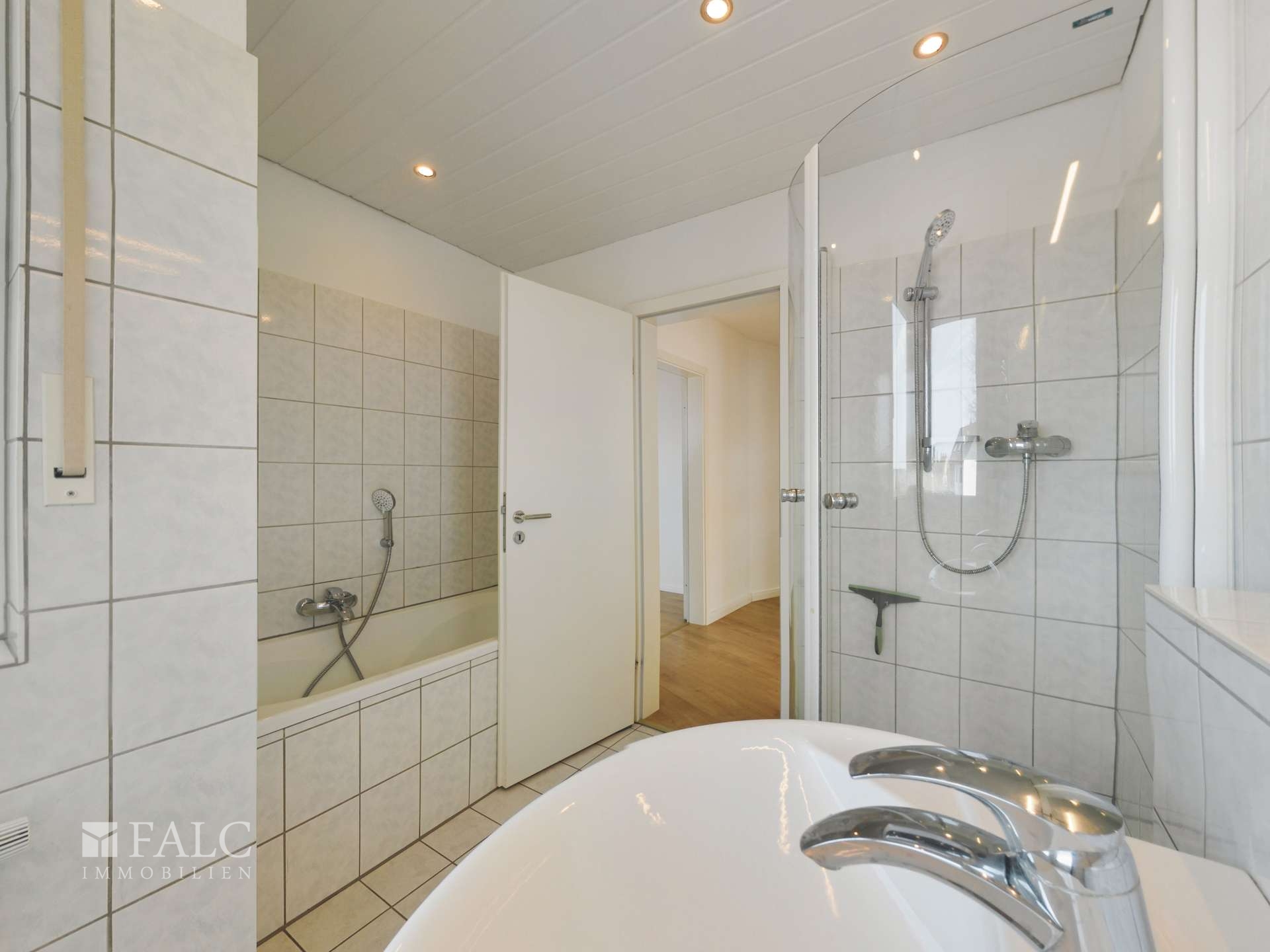 Auch in der Ausstattung zeigt sich die Wohnung gepflegt und zeitlos: isolierverglaste Kunststofffenster, überwiegend manuelle Rollläden sowie ein elektrischer Rollladen an der großen Balkontür sorgen für Komfort. Heller Laminatboden in den Wohnräumen unterstreicht die freundliche Atmosphäre, während die Bäder mit stilvollen, neutralen Fliesen gestaltet sind.