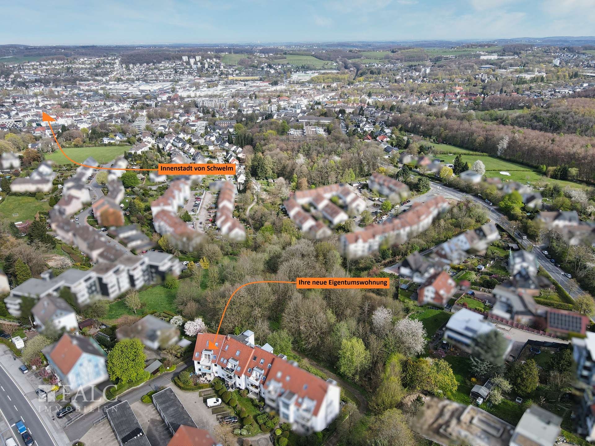 Die Eigentumswohnung befindet sich auf den gefragten Südhöhen von Schwelm, einer Lage, die für ihre hervorragende Erreichbarkeit und gewachsene Infrastruktur geschätzt wird. In zweiter Reihe gelegen, verbindet der Standort eine gute Anbindung an das städtische Leben mit einem angenehm geschützten Wohnumfeld.