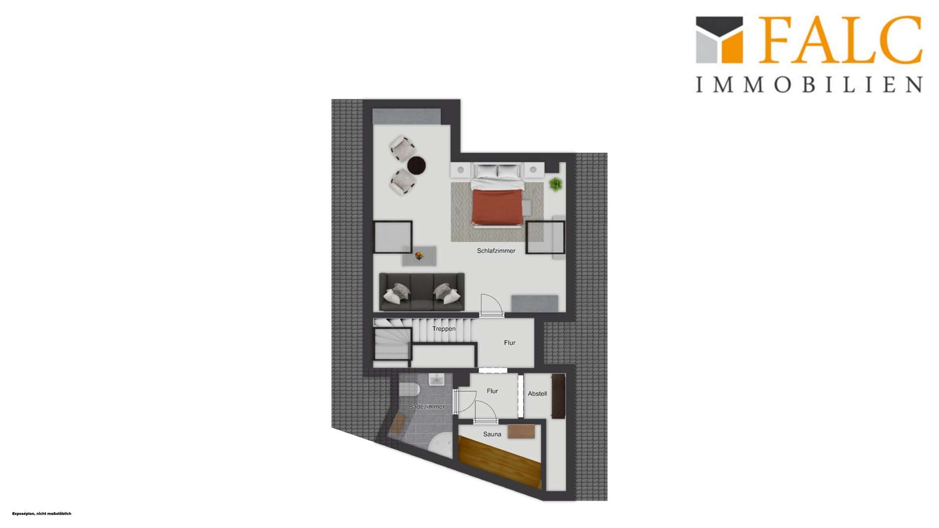 WohnzimmerSchlafzimmer (KI-generiert)SchlafzimmerKücheKücheTageslichtbadTageslichtbadSchlafzimmerBüro oder KinderzimmerDieleSaunaBalkonBalkonAußenansichtDraufsichtAußenansichtGrundriss ObergeschossGrundriss DachgeschossWohnzimmer (KI-generiert)