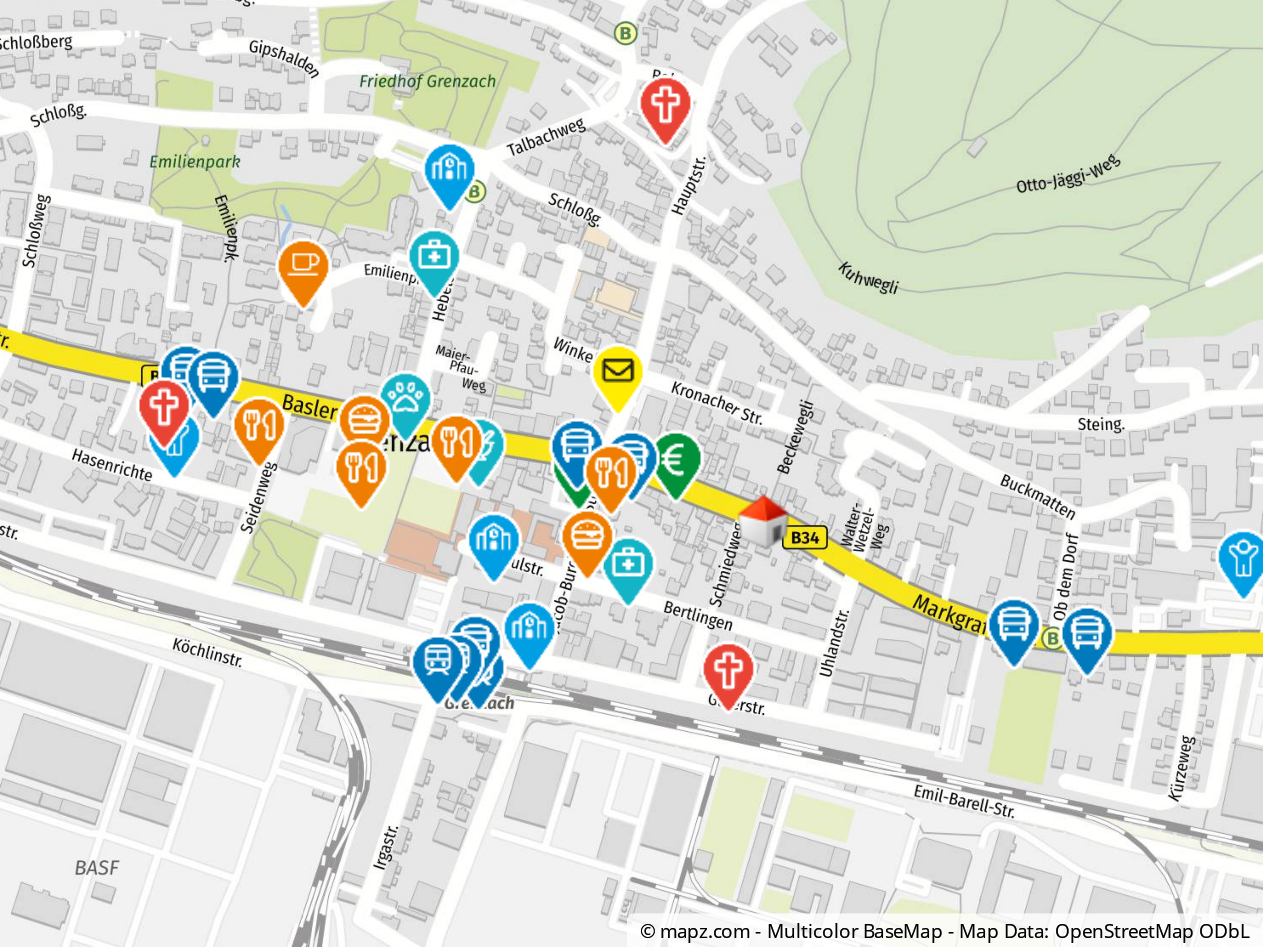 Ein kurzer Spaziergang von etwa zehn Minuten führt Sie zum Grenzacher Hallenbad und dem beliebten Lebensmittelladen Allnatura. Auch Einkaufsmöglichkeiten wie Lidl und Hieber Markt sowie eine Vielzahl von Restaurants sind nur einen Katzensprung entfernt. Familien profitieren von der Nähe zu Grundschulen und Kindergärten, während die Realschule in Wyhlen bequem mit dem Bus in wenigen Minuten erreichbar ist.