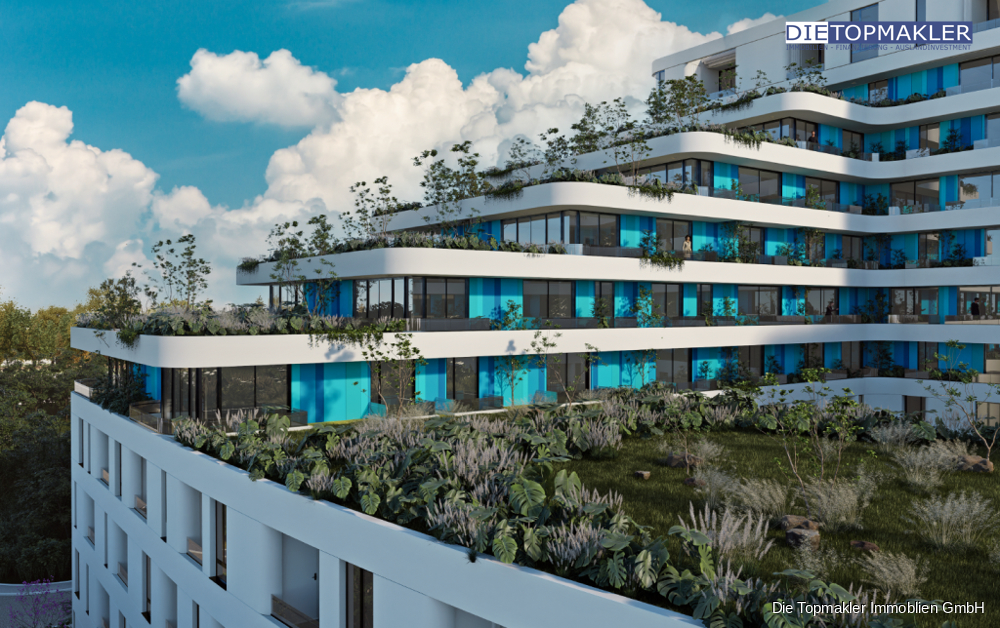 Exklusive Privatsphäre & grüne Oasen - Hotelkomfort auf den ersten 3 Etagen – ideal für Gäste oder Kurzzeitvermietungen. - Elitäre Penthouse-Apartments auf den oberen Etagen mit begrünten Terrassen, weitläufigen Grundrissen und Panoramablick. - Innenhof mit Wasserspielen und üppiger Vegetation – eine Ruhezone mitten in der Stadt.