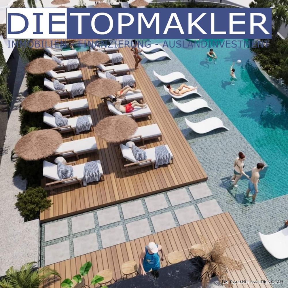 Ausstattung der Apartments Schlüsselfertig & hochwertig: - Infinity-Pool & Wellness-Oase - Moderne Verputzung, Fliesenböden (Wohn-/Badbereiche). - Voll ausgestattete Bäder, Klimaanlage, Einbauküche*. - Individuelle Gestaltung auf Wunsch möglich.