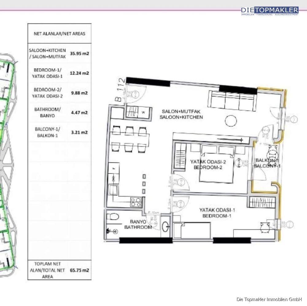 Ausstattung der Apartments Schlüsselfertig & hochwertig: - Moderne Verputzung, Fliesenböden (Wohn-/Badbereiche). - Voll ausgestattete Bäder, Klimaanlage, Einbauküche*. - Individuelle Gestaltung auf Wunsch möglich.