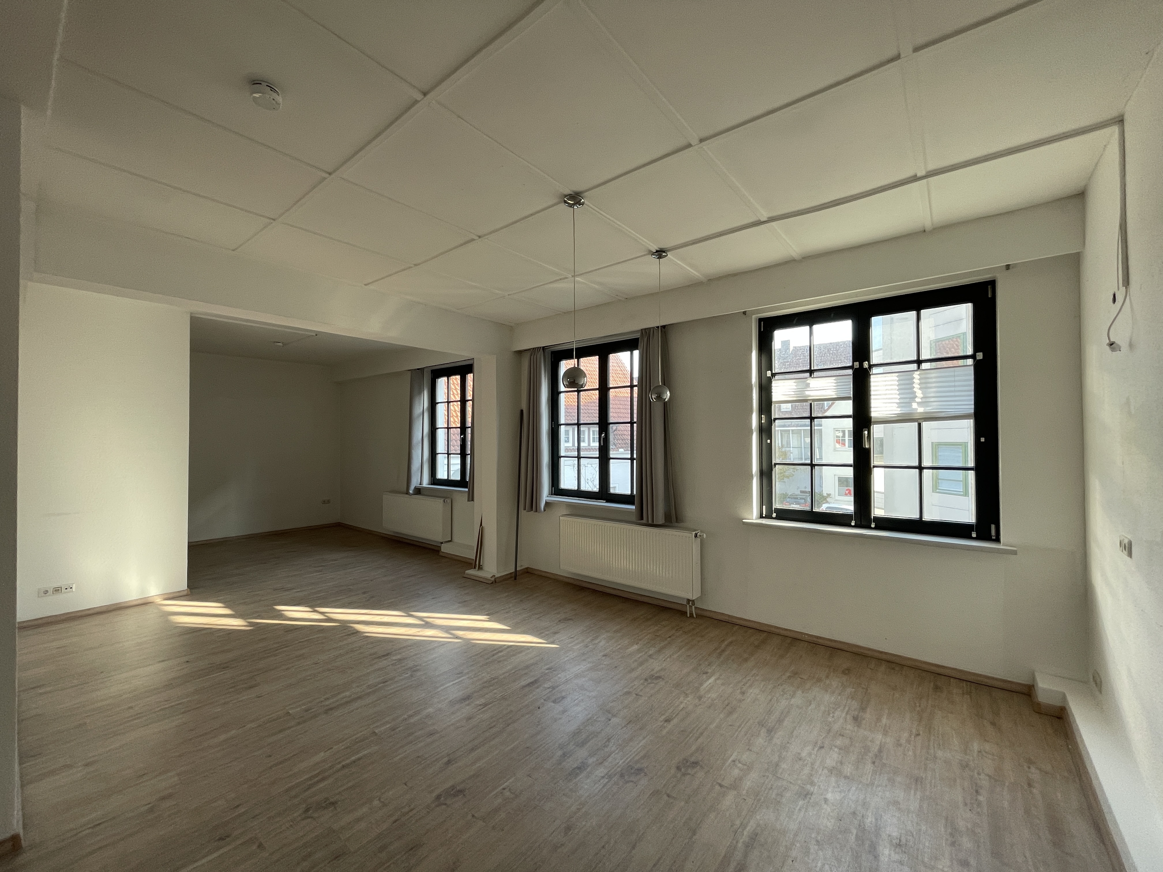 Es begrüßt Sie eine sehr gepflegte 2 Zimmer-Wohnung im 1. Obergeschoss eines Wohn- und Geschäftshauses in attraktiver Innenstadtlage von Bünde. Die Wohnfläche wird mit ca. 85 m² beziffert und bietet seinem zukünftigen Bewohner ein großes Wohn-/Esszimmer im "Loftcharakter", ein geräumiges Schlafzimmer und ein helles Tageslicht-Badezimmer ausgestattet mit einer Dusche. Ein Kellerraum gehört zu der Wohnung. Die angegebenen Nebenkosten sind Betriebskosten. Die Kosten für Heizung und Strom werden direkt mit dem zuständigen Versorgungsunternehmen abgerechnet.