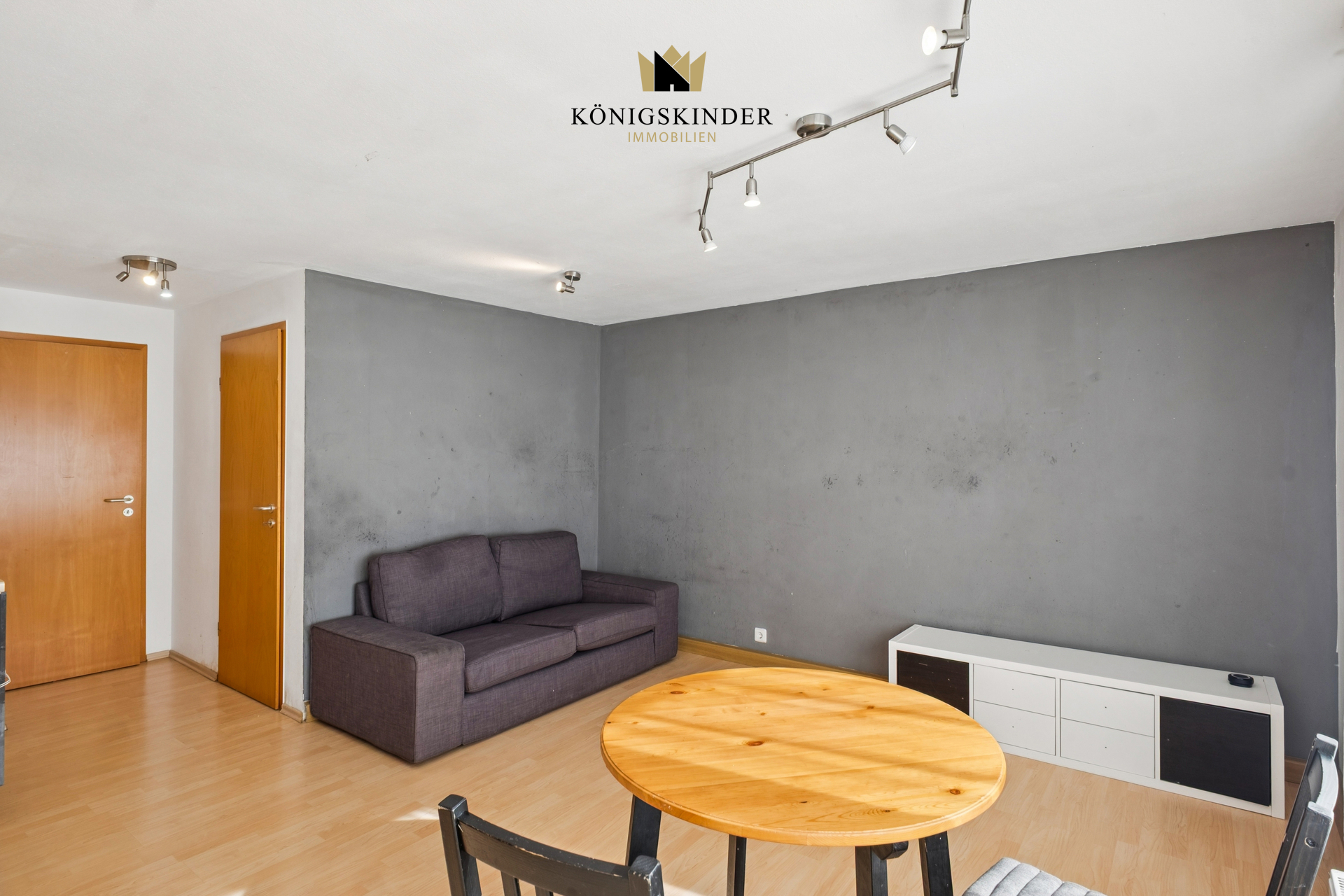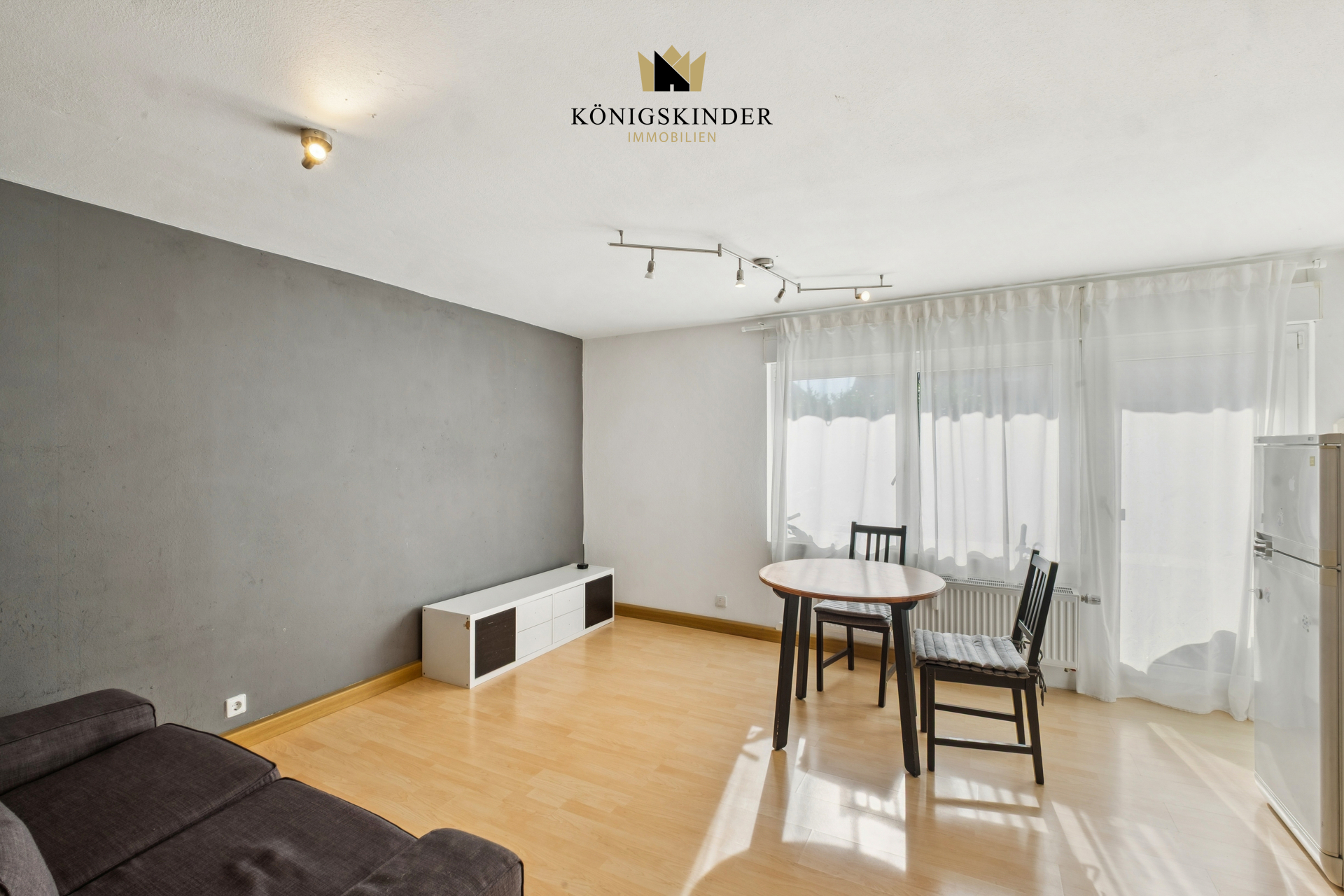 Die Wohnung verfügt über zwei gut geschnittene Zimmer, die sich ideal als Wohn- und Schlafzimmer nutzen lassen. Der Wohnbereich bietet direkten Zugang zur Terrasse, die zusätzlichen Platz im Freien schafft und zum Entspannen einlädt.