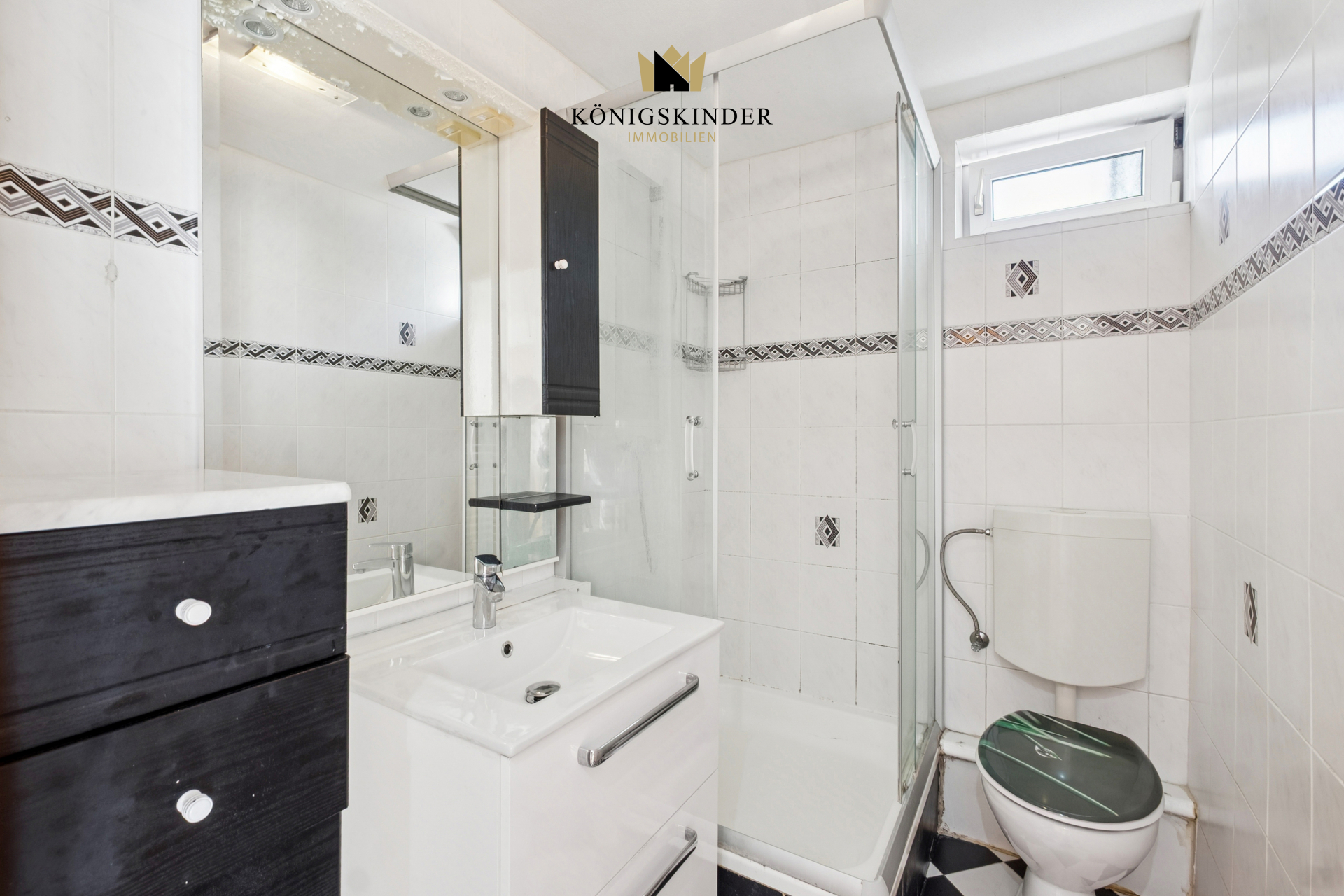 Das Tageslichtbadezimmer ist mit einer Dusche sowie einem WC ausgestattet. Ein Fenster sorgt für natürliche Belichtung und gute Belüftungsmöglichkeiten.